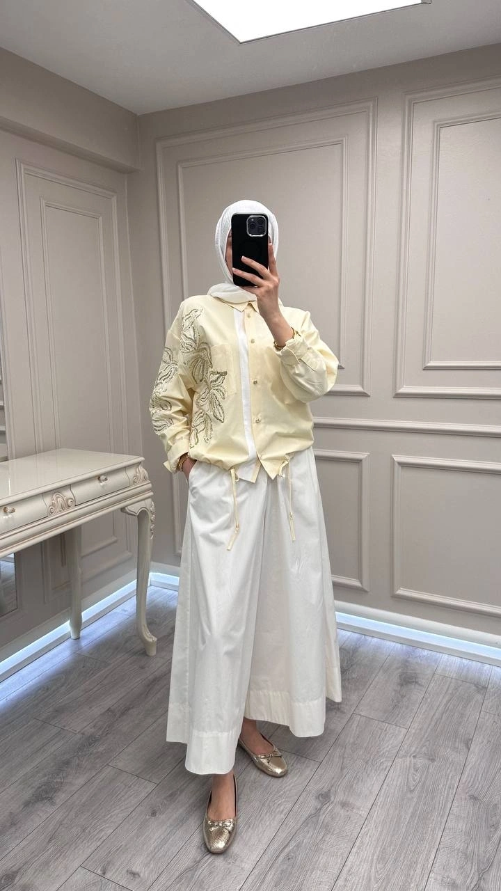 Ghisa 3610T4317 Sarı İşleme Detaylı Tunik