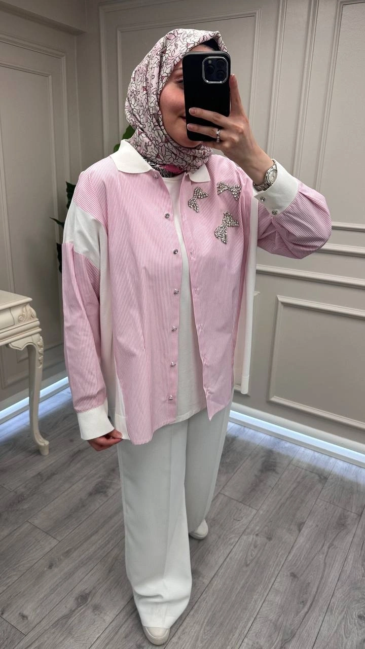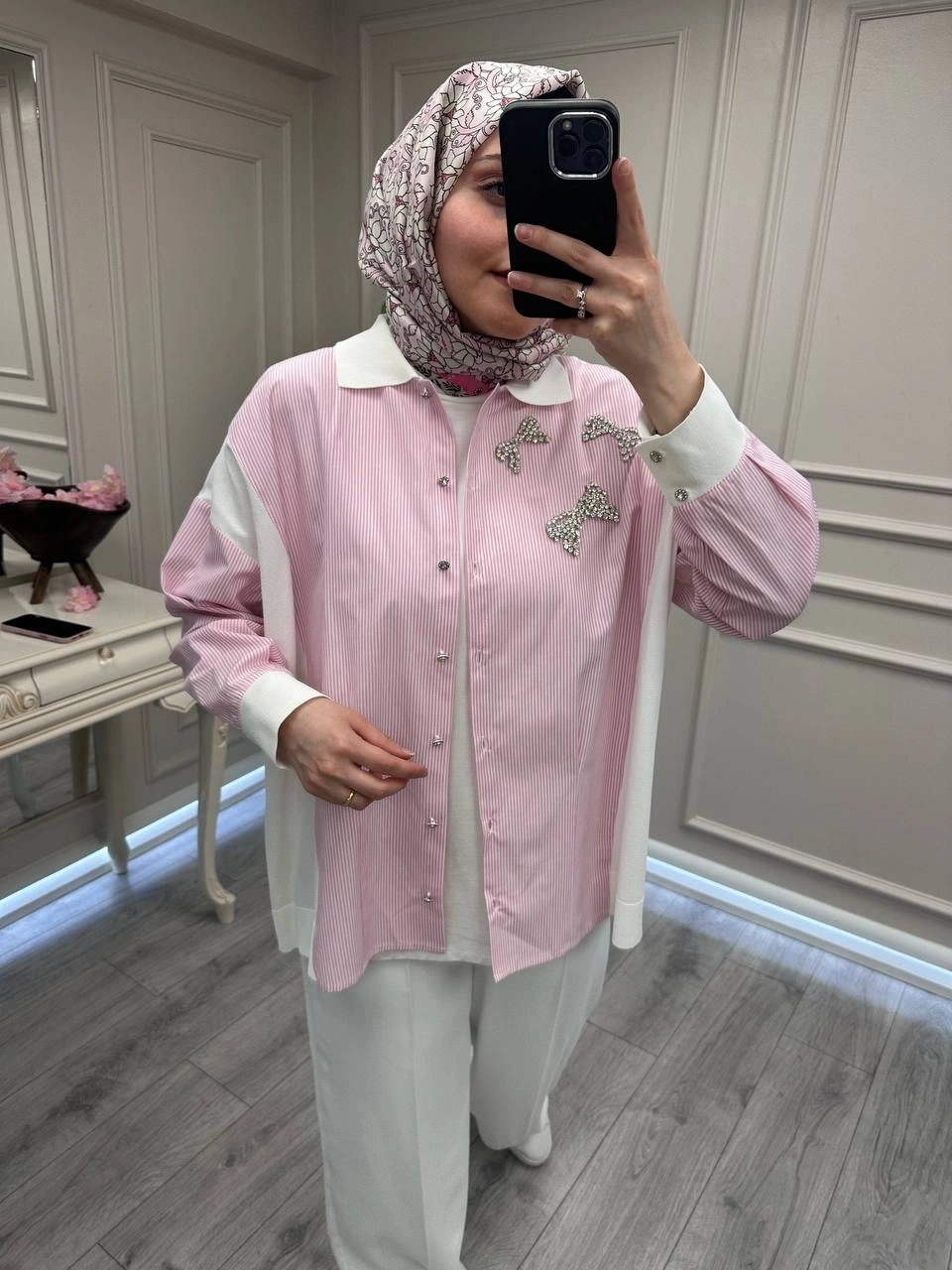 Ghisa 3610T4327 Pembe Yakası Taş Detaylı Tunik