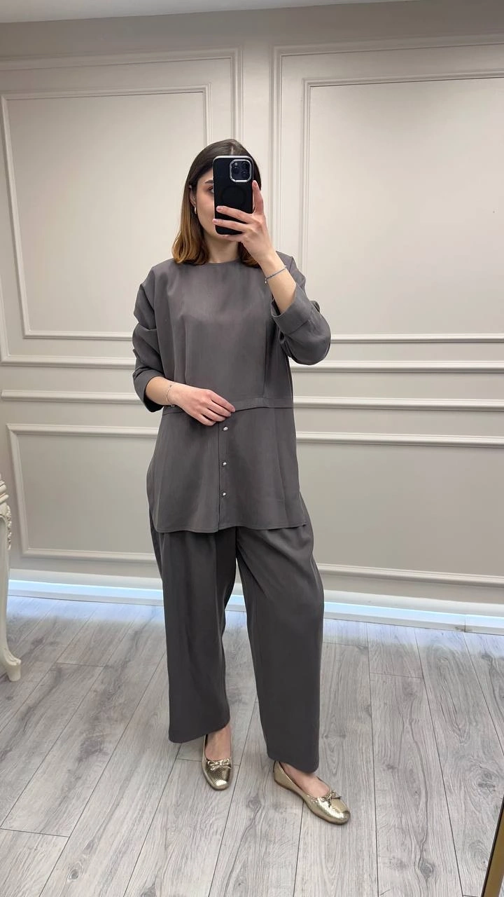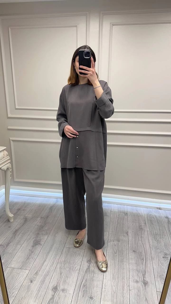 Ghisa Kahve Önü Düğme Detaylı Takım
