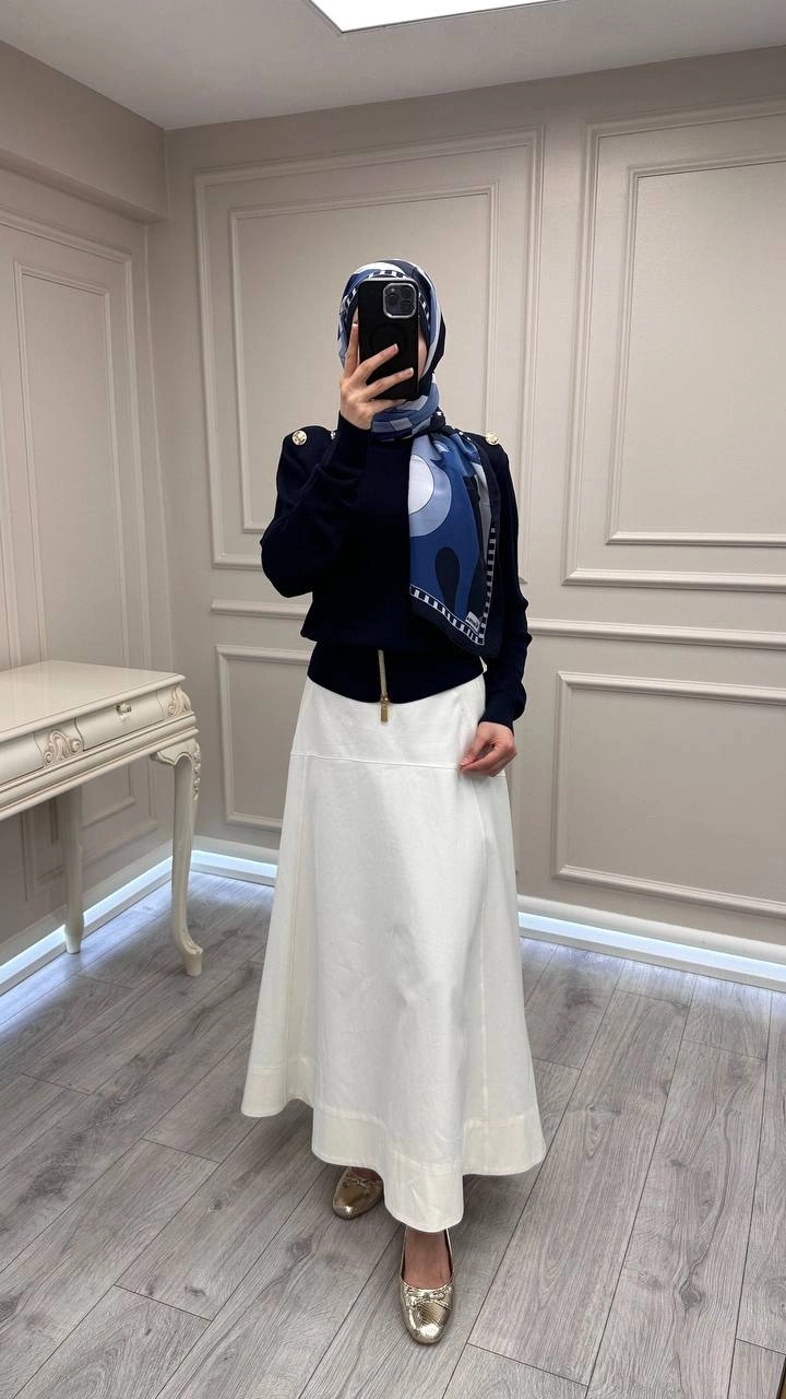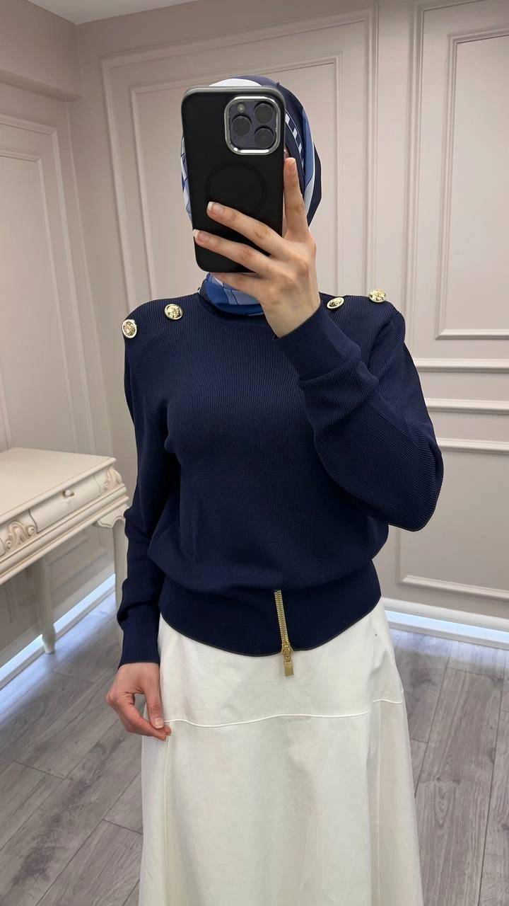 Ghisa Lacivert Vatkalı Fermuar Detaylı Merserize Tunik