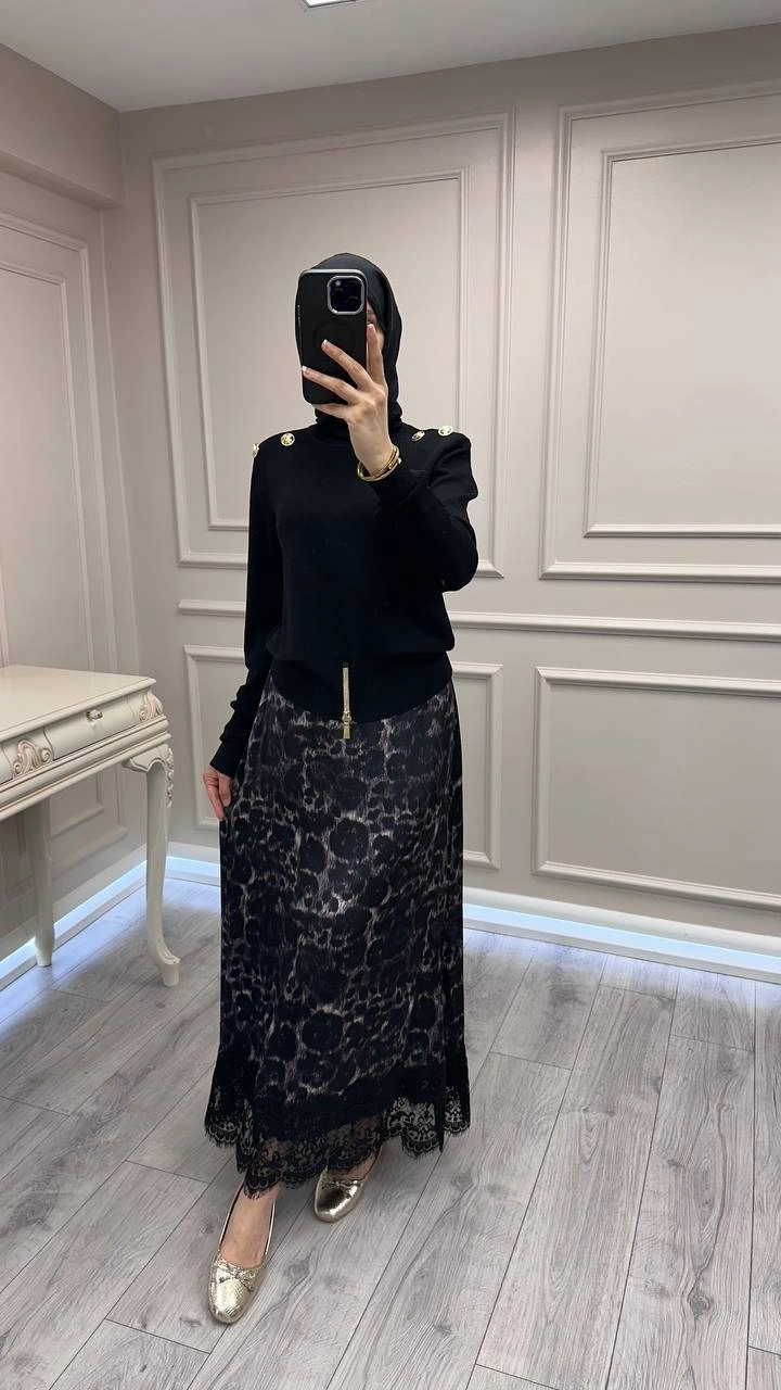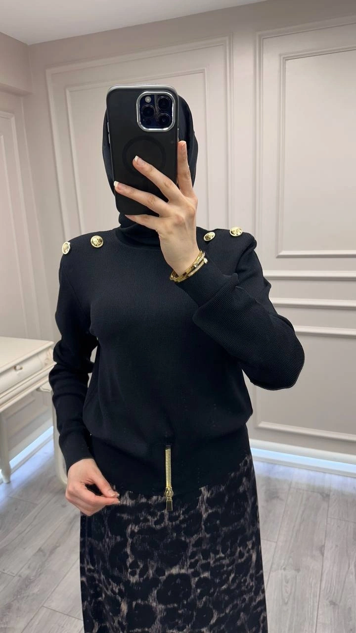 Ghisa Siyah Vatkalı Fermuar Detaylı Merserize Tunik