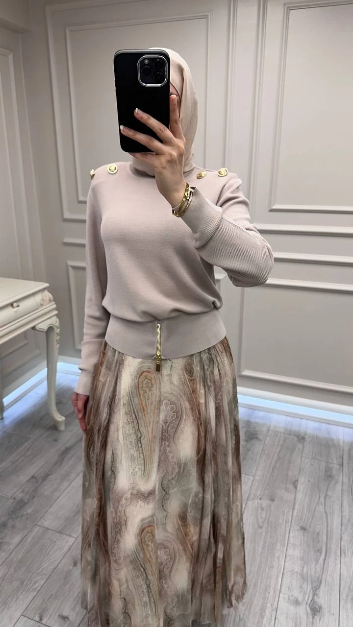 Ghisa Taş Vatkalı Fermuar Detaylı Merserize Tunik