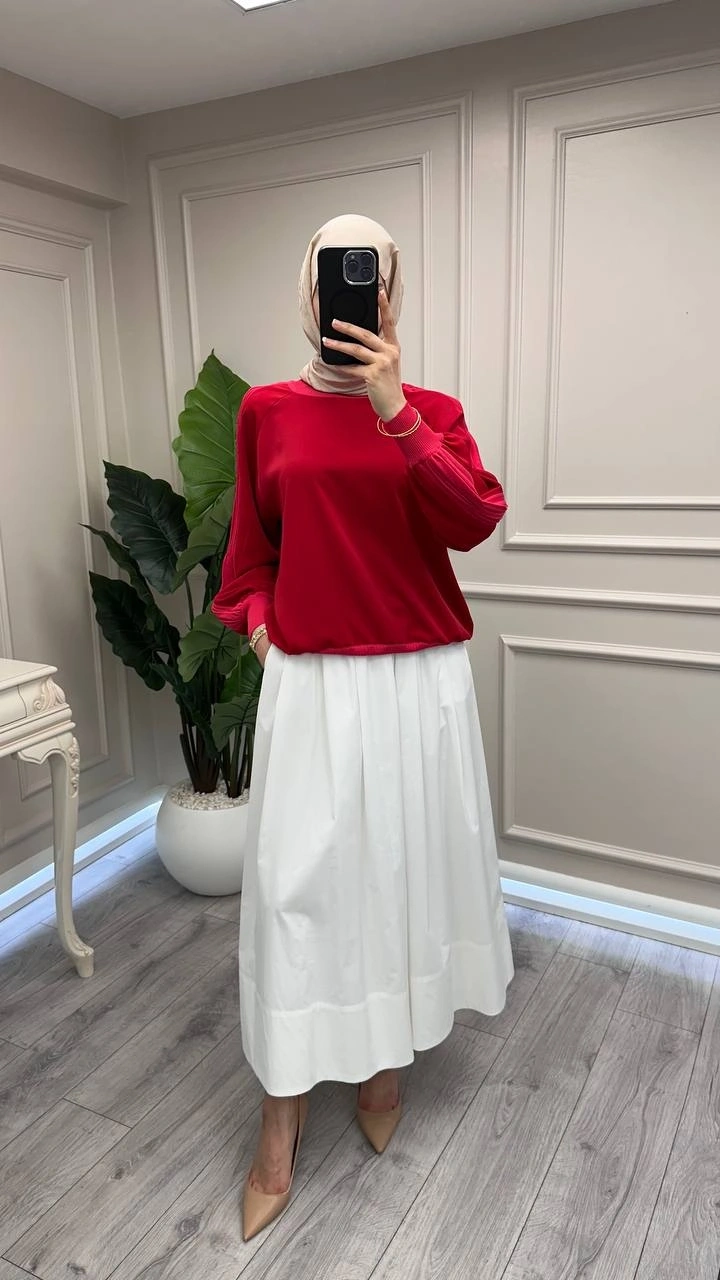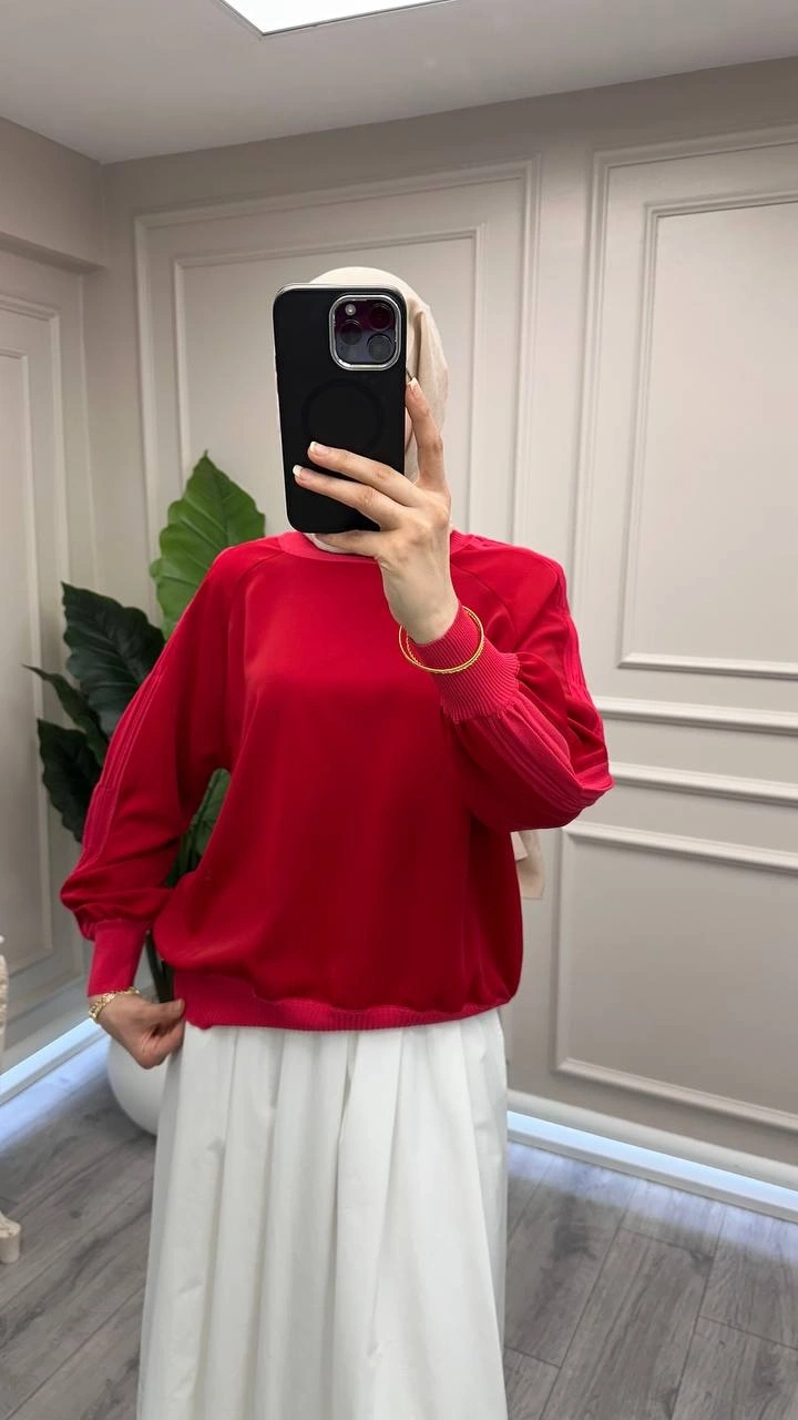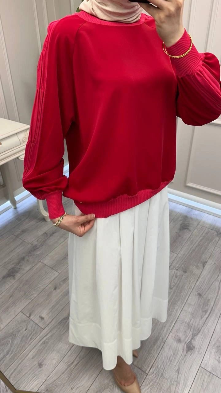 Ghisa Kırmızı Kol Kısmı Detaylı Tunik