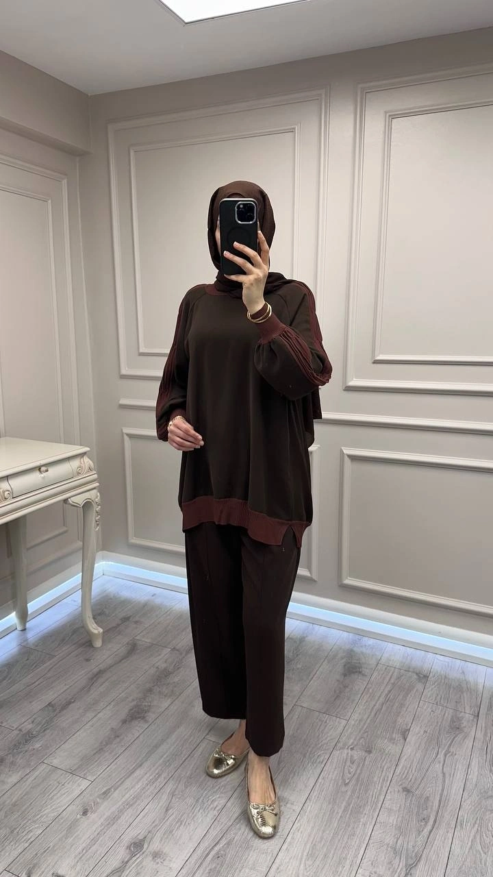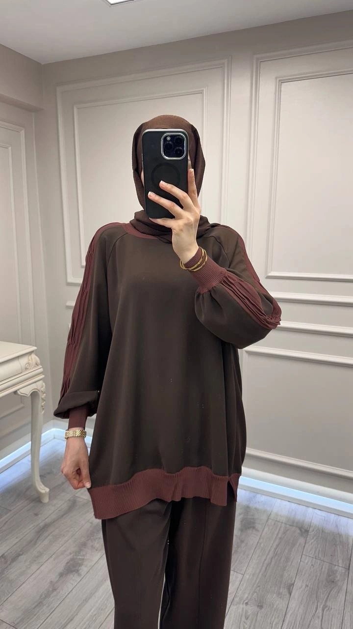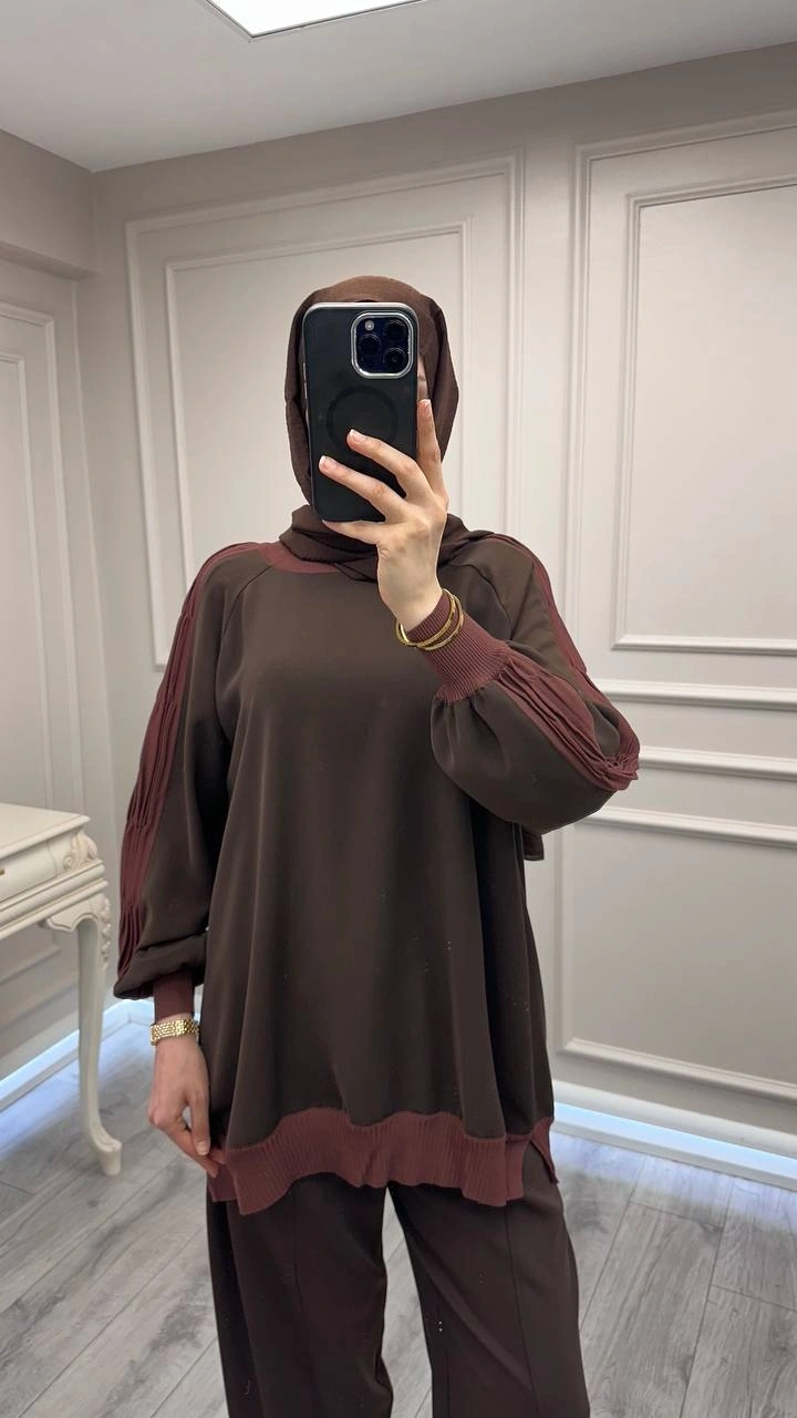 Ghisa Kahve Kolları Merserize Detaylı Tunik