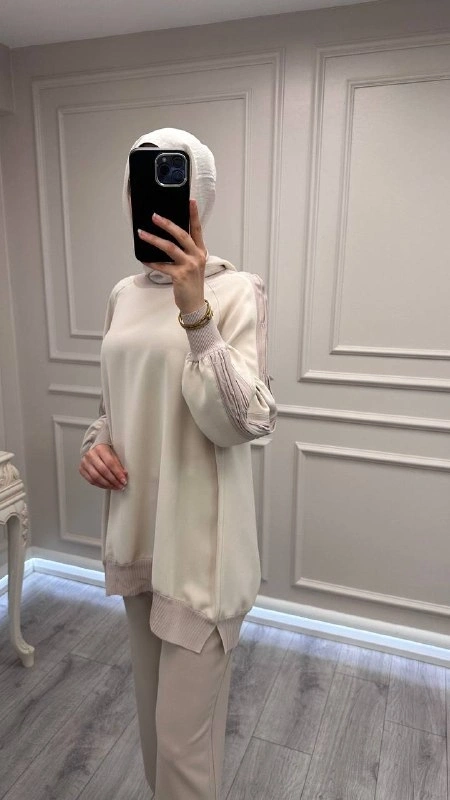 Ghisa Taş Kolları Merserize Detaylı Tunik