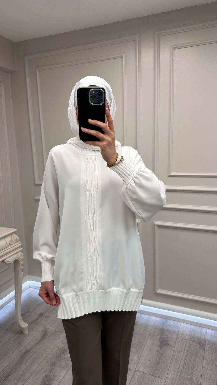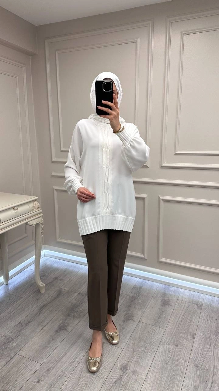 Ghisa Ekru Etek Ucu Ve Önü Merserize Detaylı Tunik