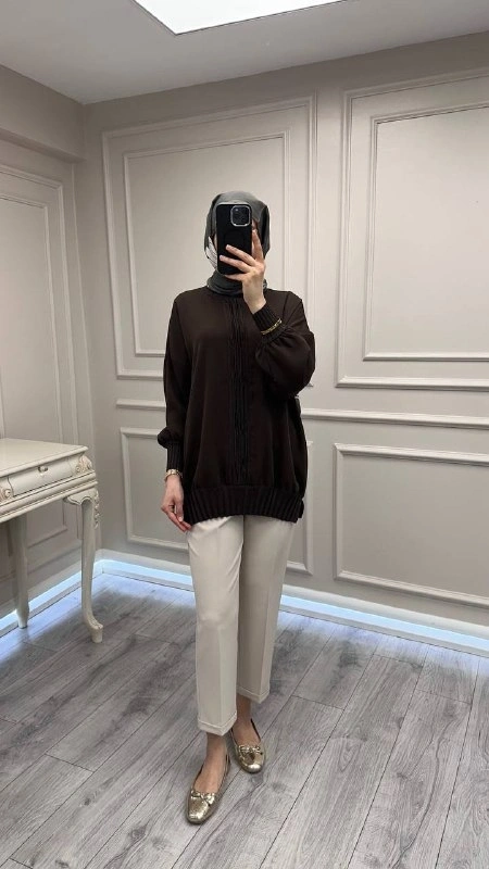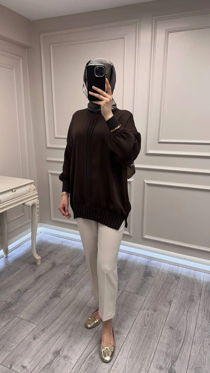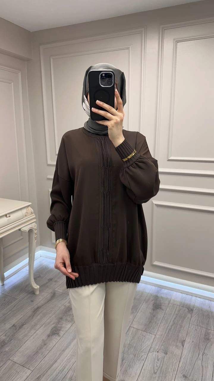 Ghisa Kahve Etek Ucu Ve Önü Merserize Detaylı Tunik