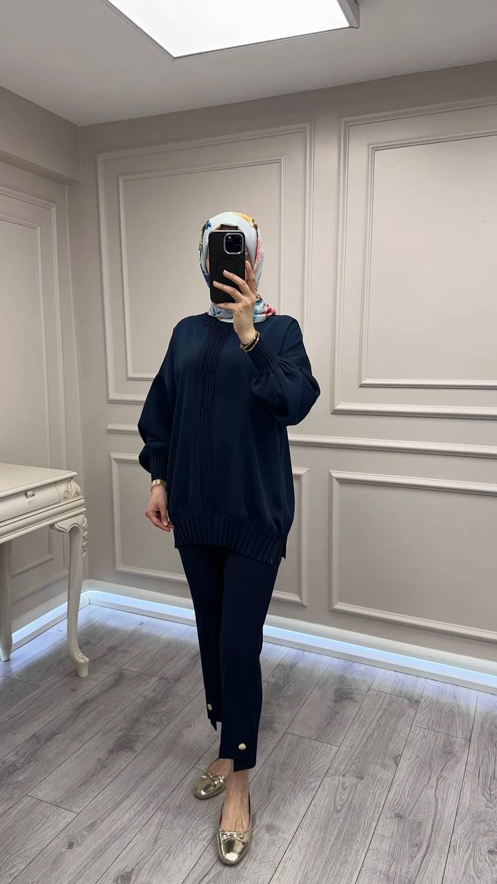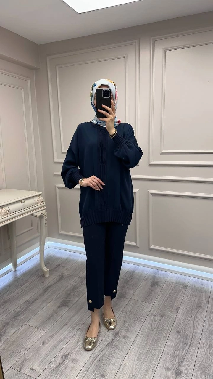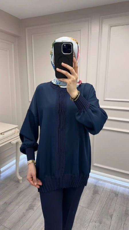 Ghisa Lacivert Etek Ucu Ve Önü Merserize Detaylı Tunik