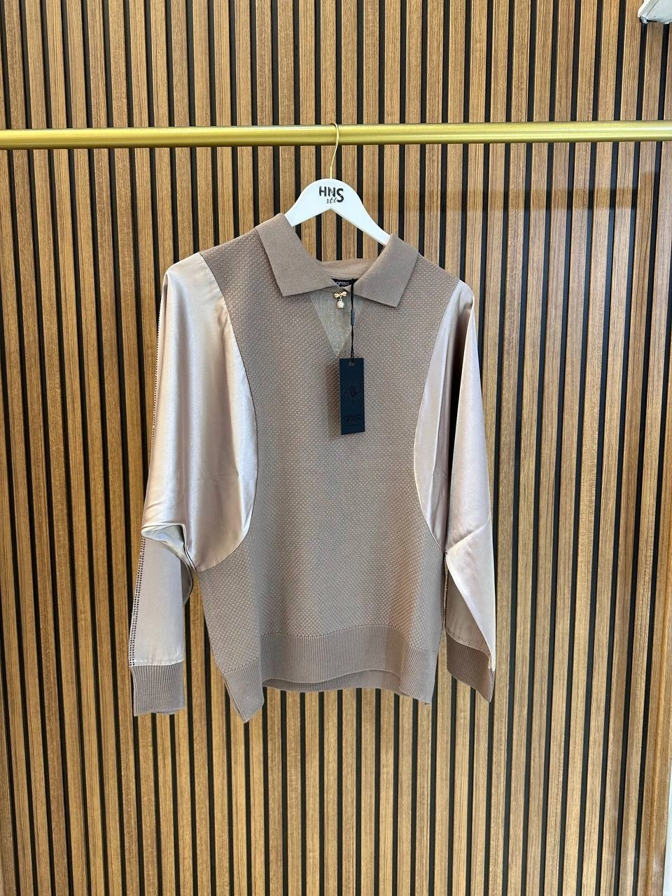 Ghisa Kahve Kolları Saten Detaylı Tunik