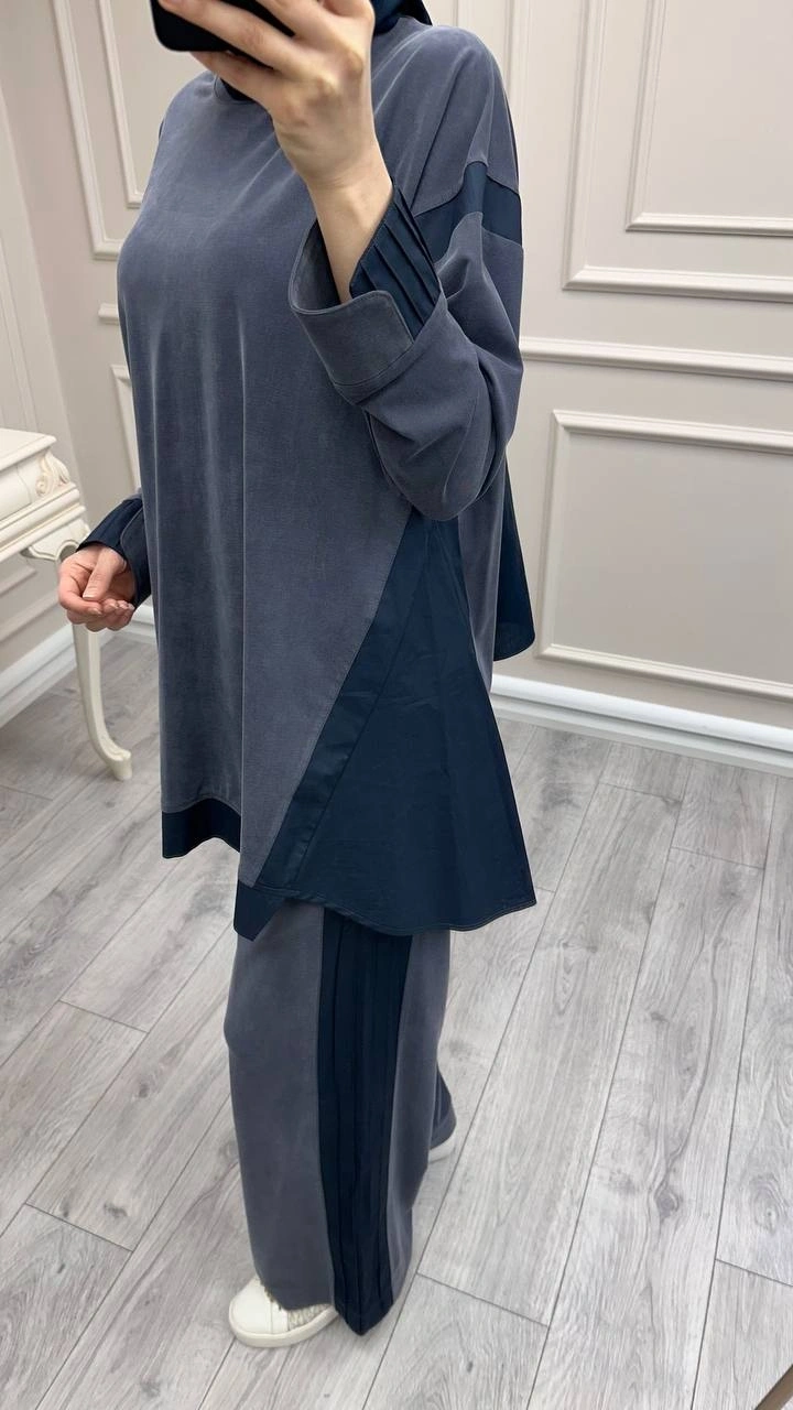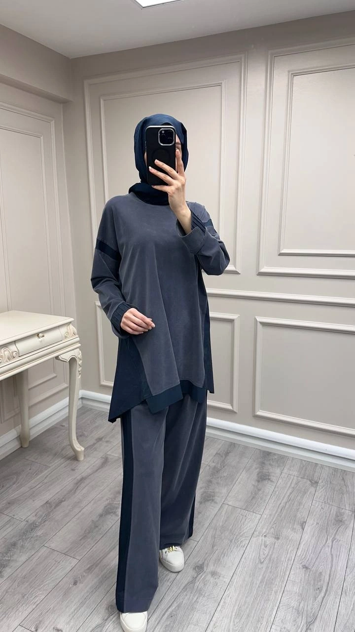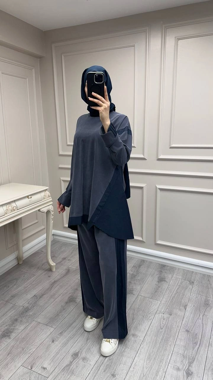 Hilay Lacivert Icon Nervürlü Garni Kumaşlı Takım