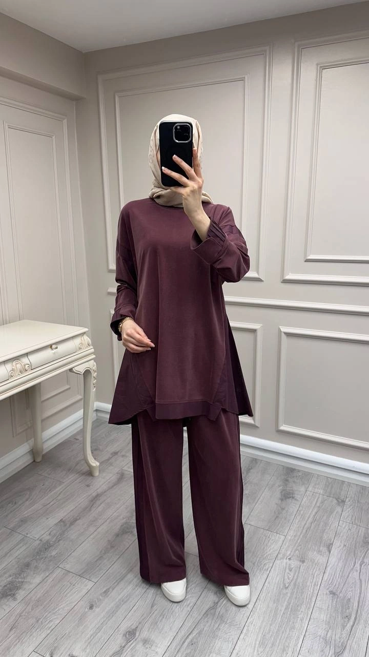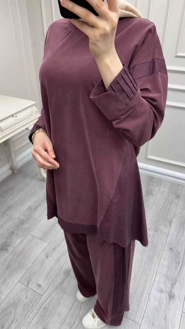 Hilay Mürdüm Icon Nervürlü Garni Kumaşlı Takım