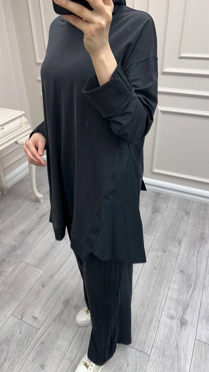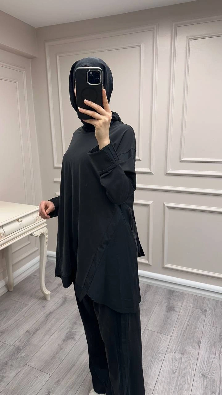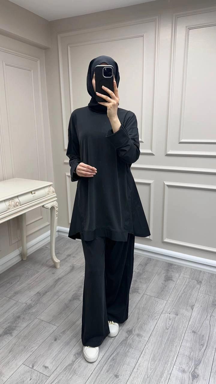 Hilay Siyah Icon Nervürlü Garni Kumaşlı Takım