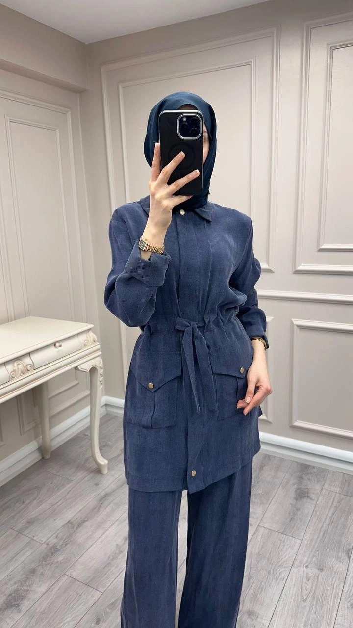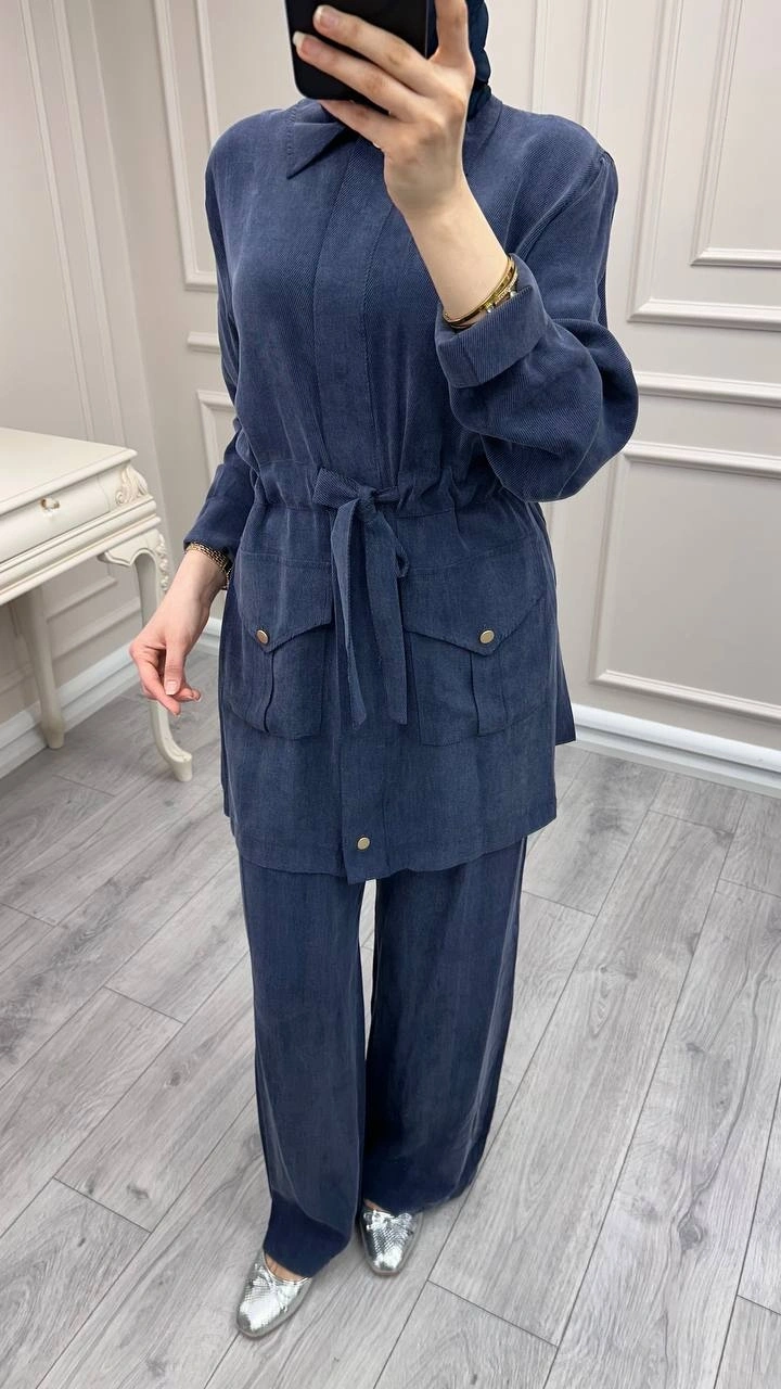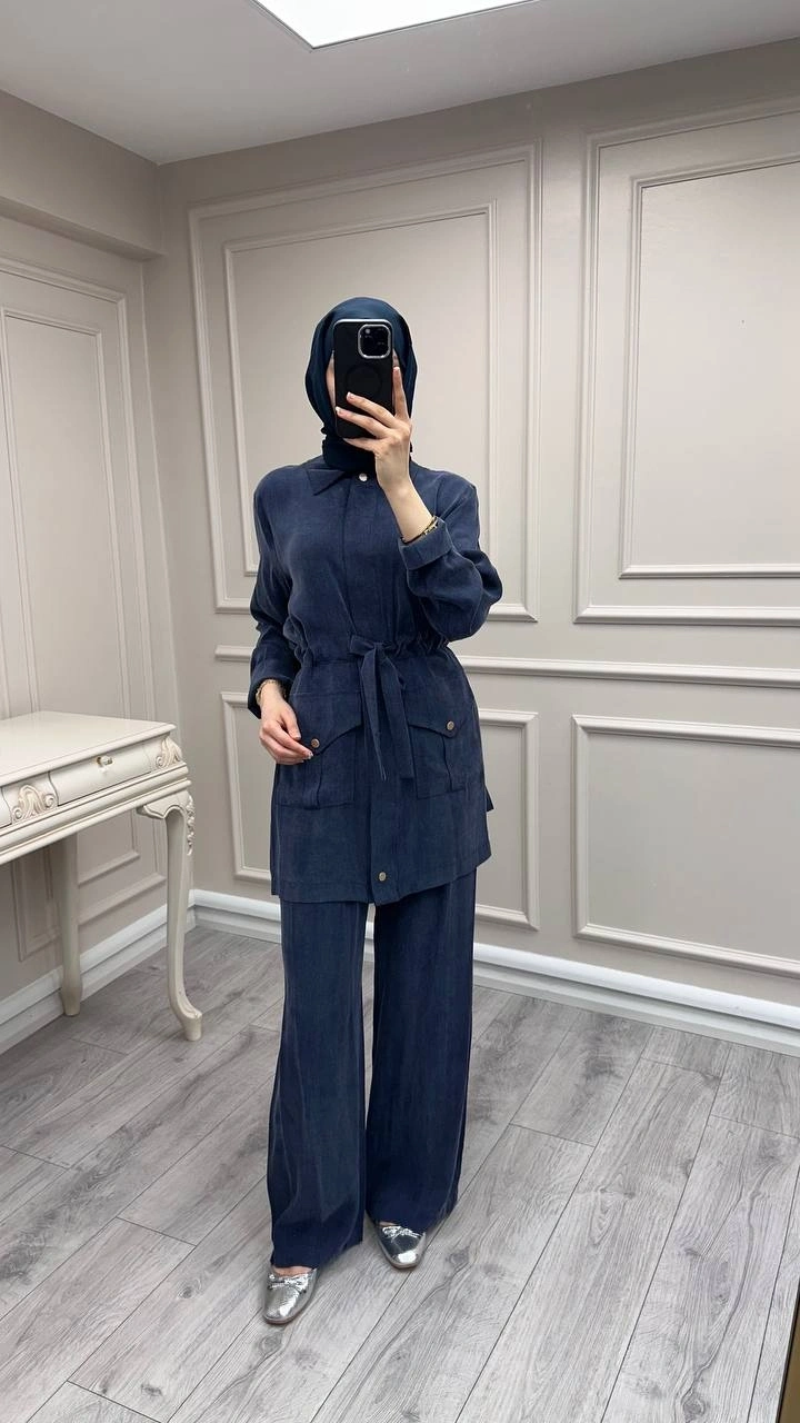 Hilay Lacivert Siena Beli Bağlamalı Cepli Takım
