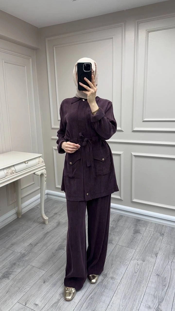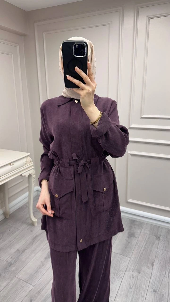 Hilay HLY0126K101.057 Mürdüm Siena Beli Bağlamalı Cepli Takım