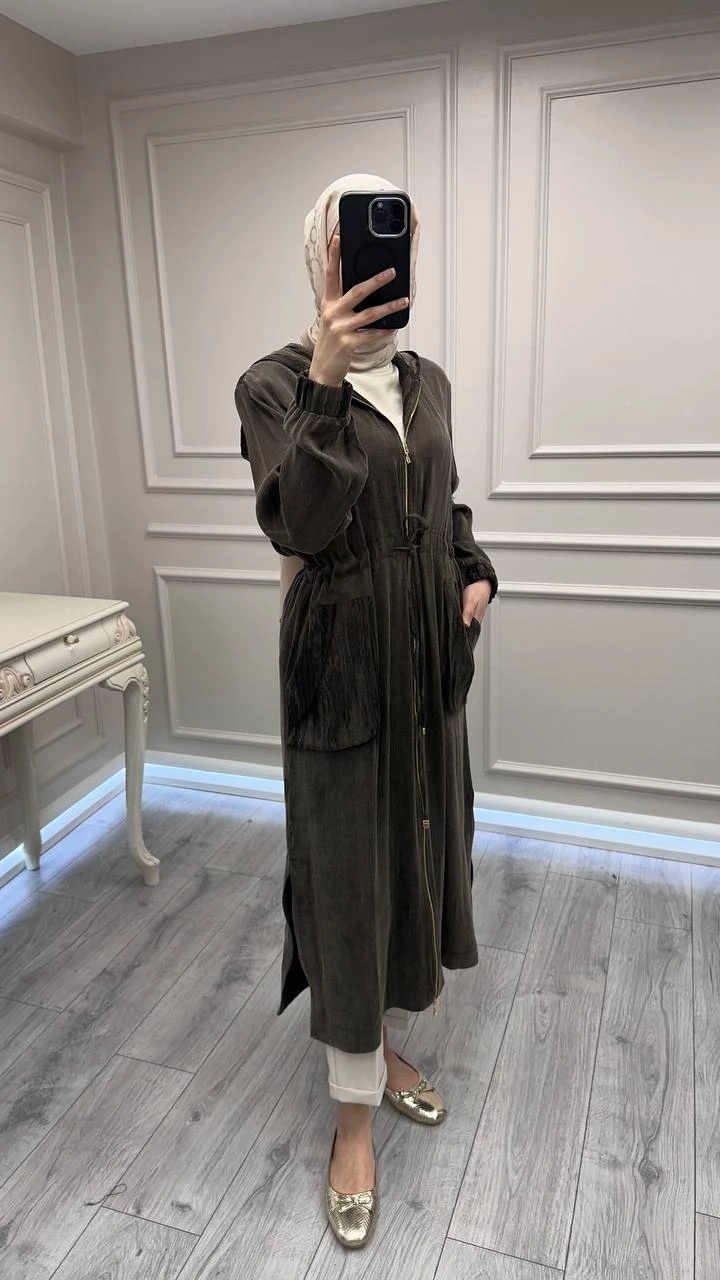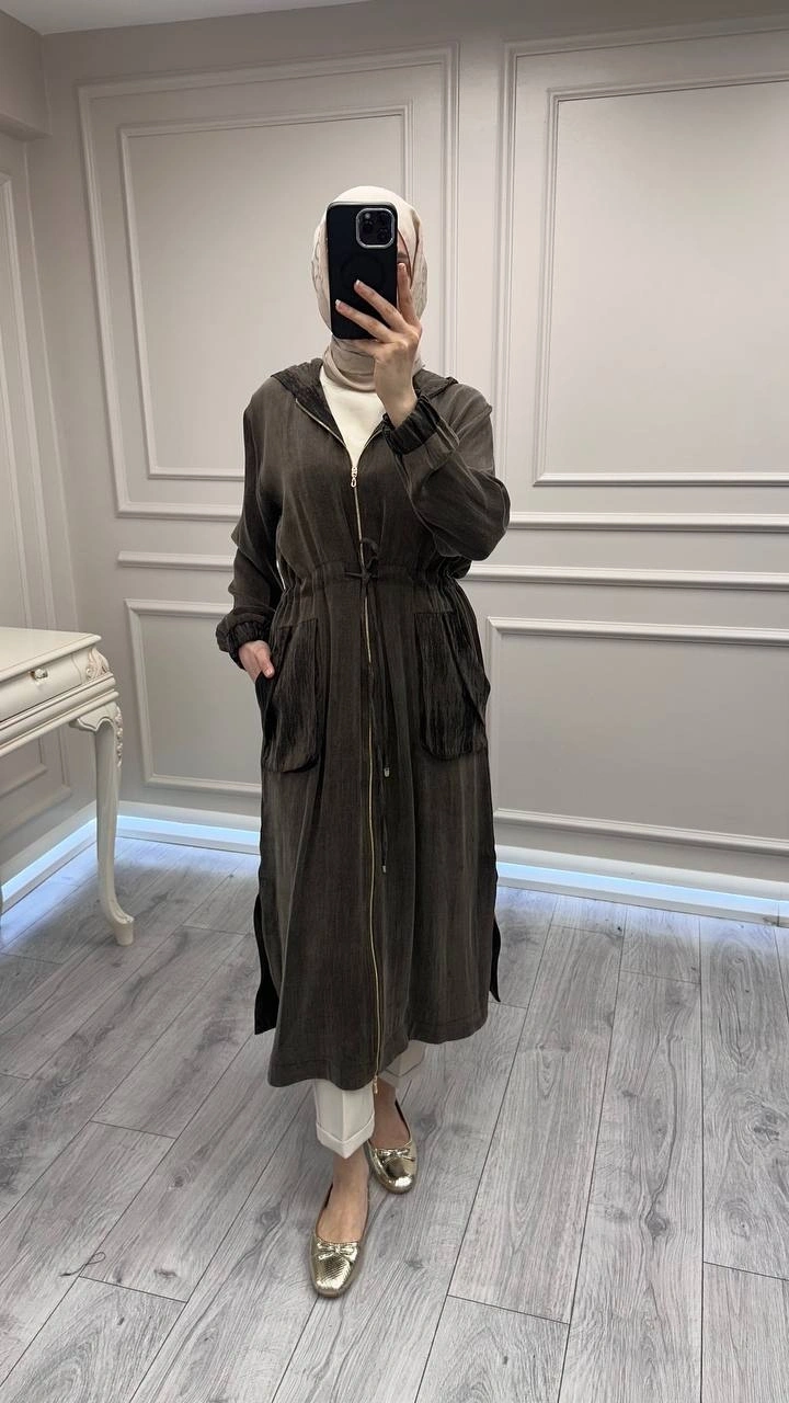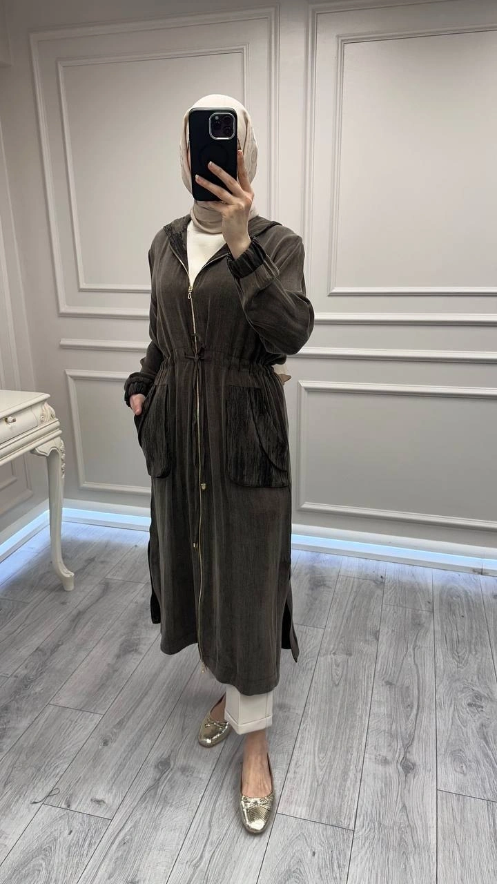 Hilay Kahve Nevada Jakar Garnili Uzun Kap
