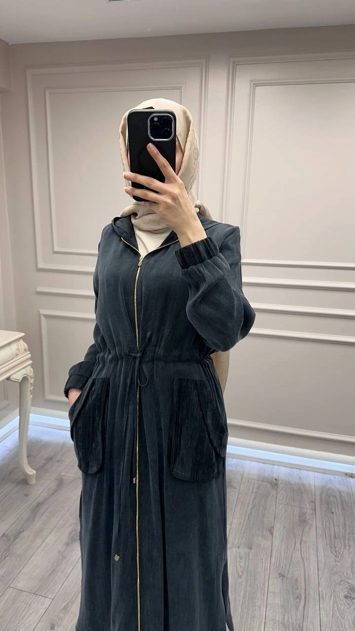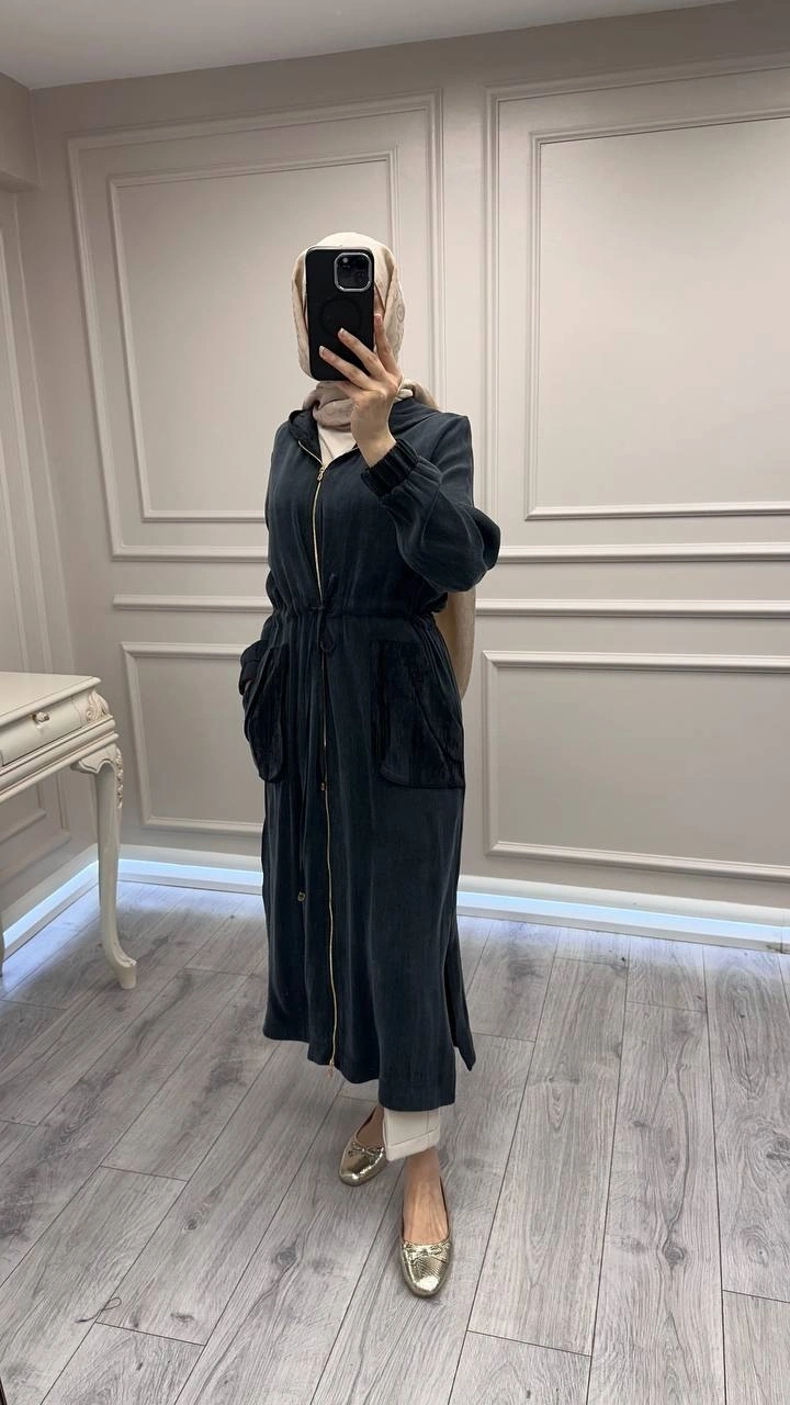Hilay Siyah Nevada Jakar Garnili Uzun Kap