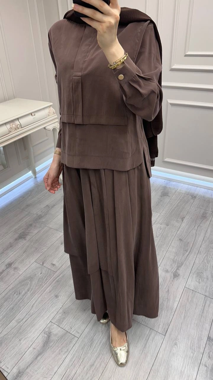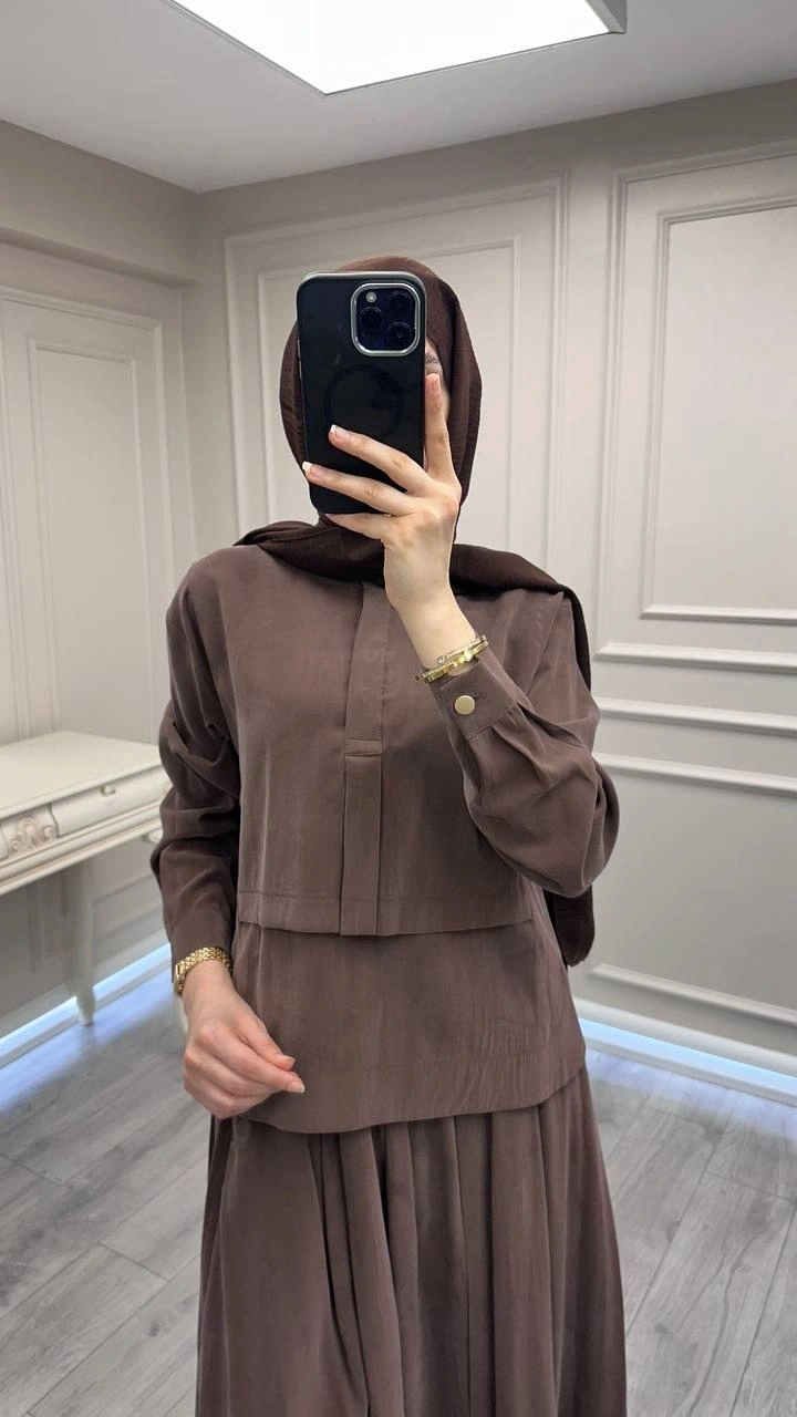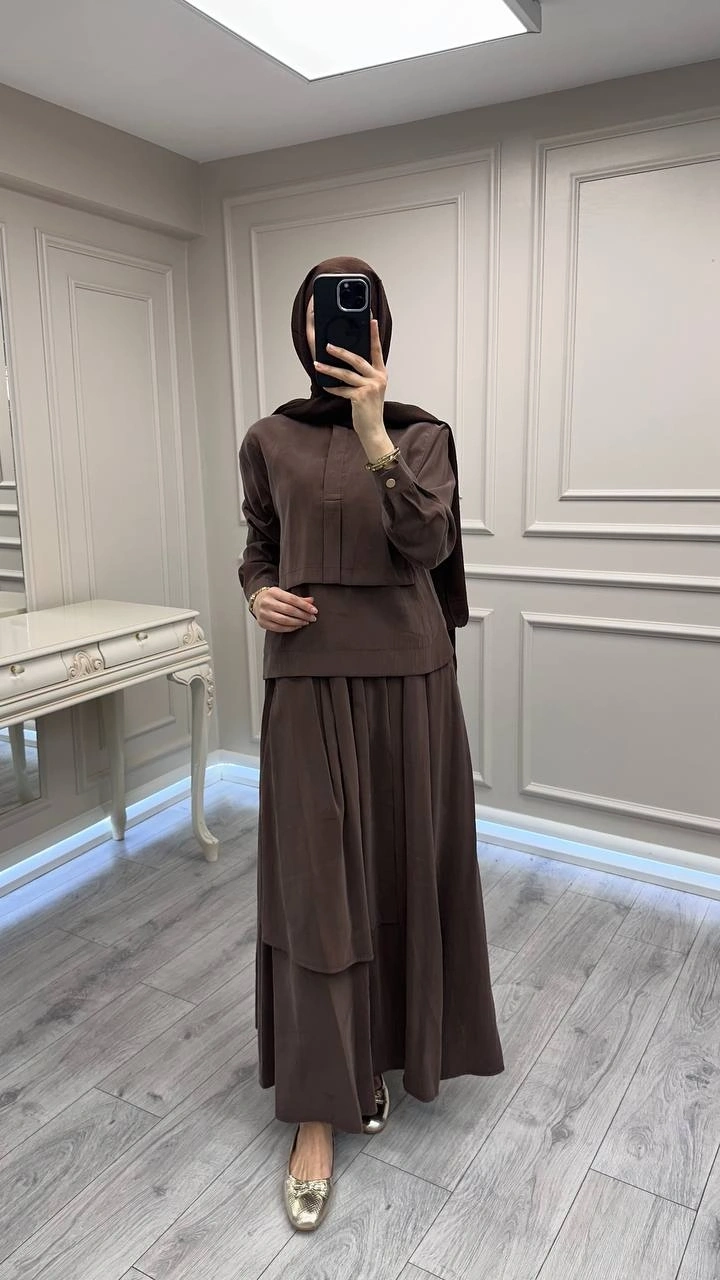 Hilay Kahve Bianca Allerli Asimetrik Etekli Takım