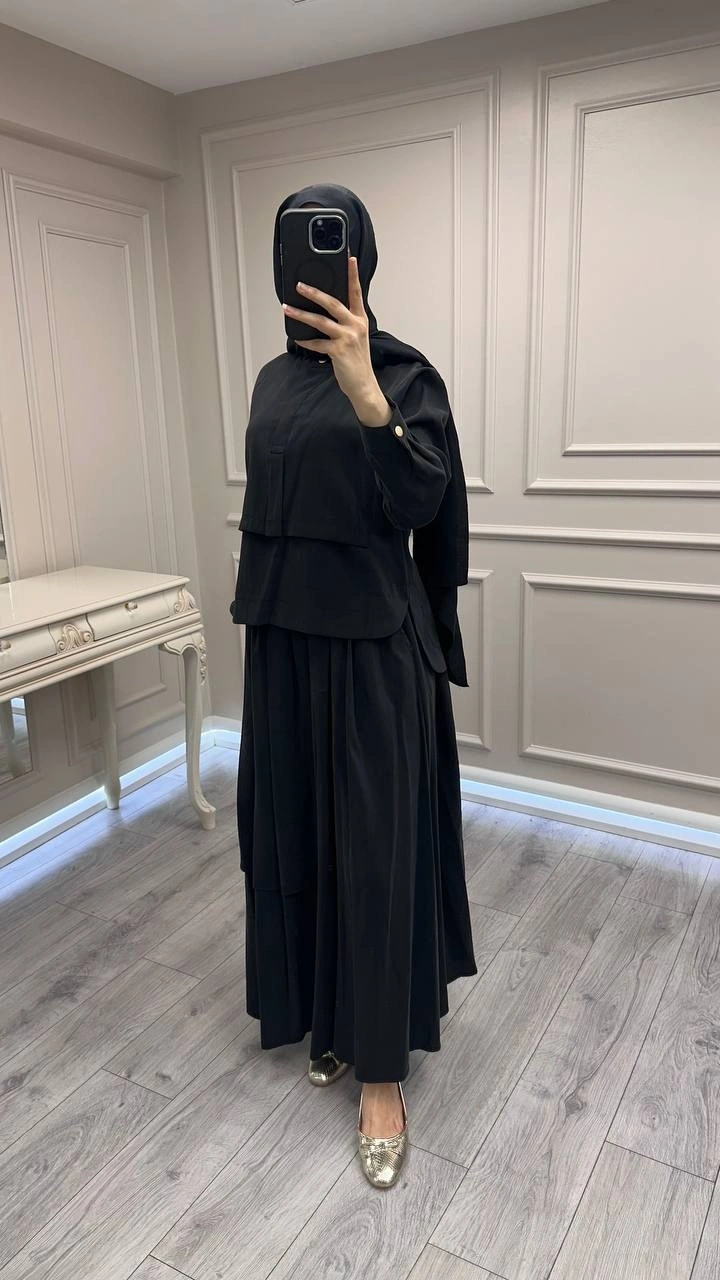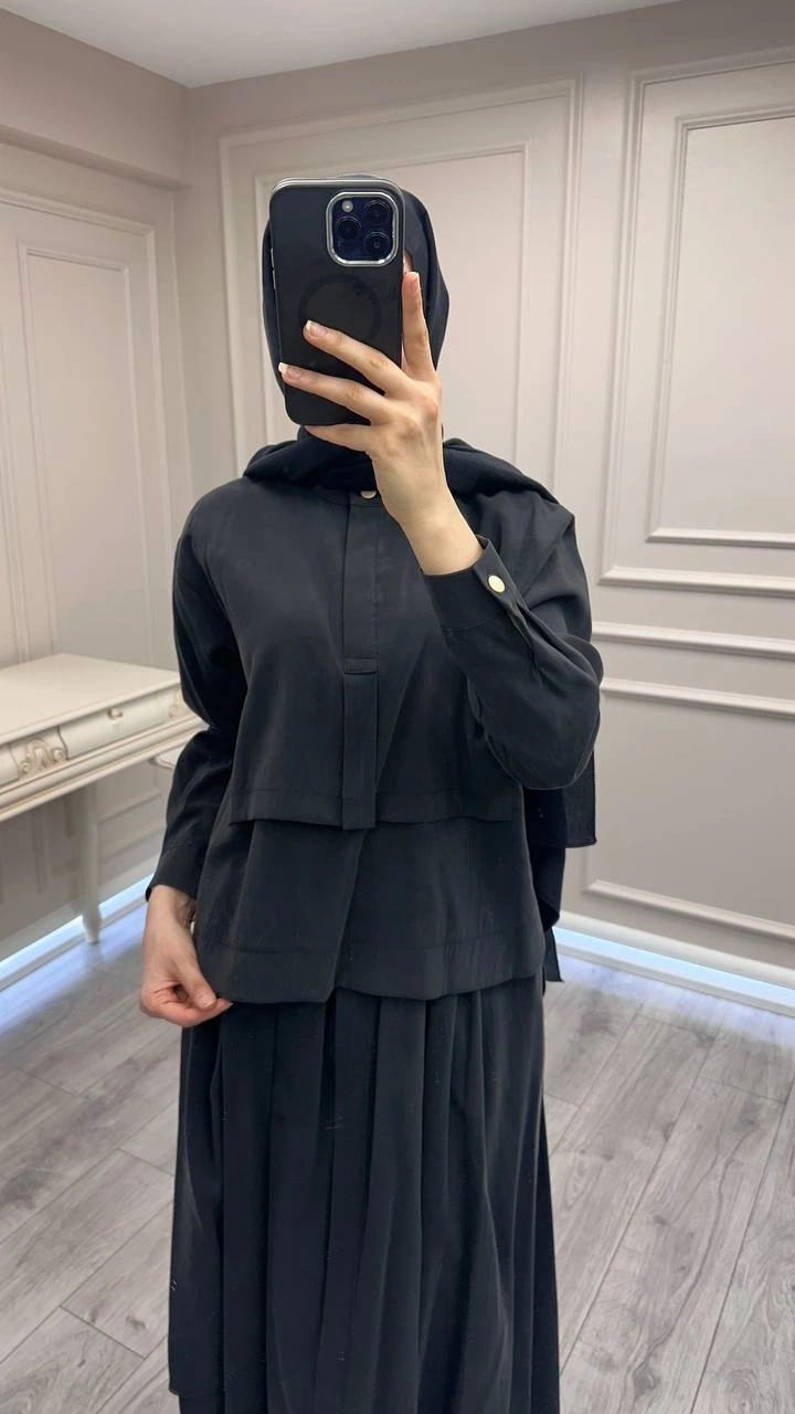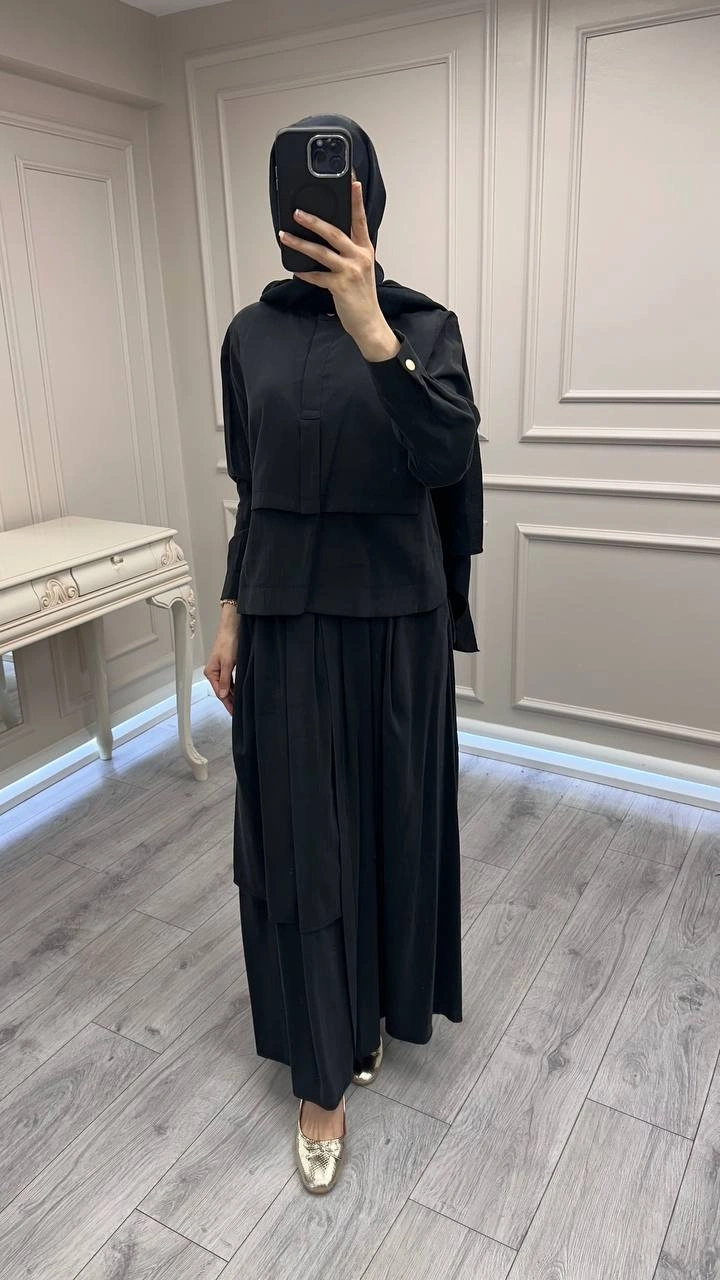 Hilay Siyah Bianca Allerli Asimetrik Etekli Takım
