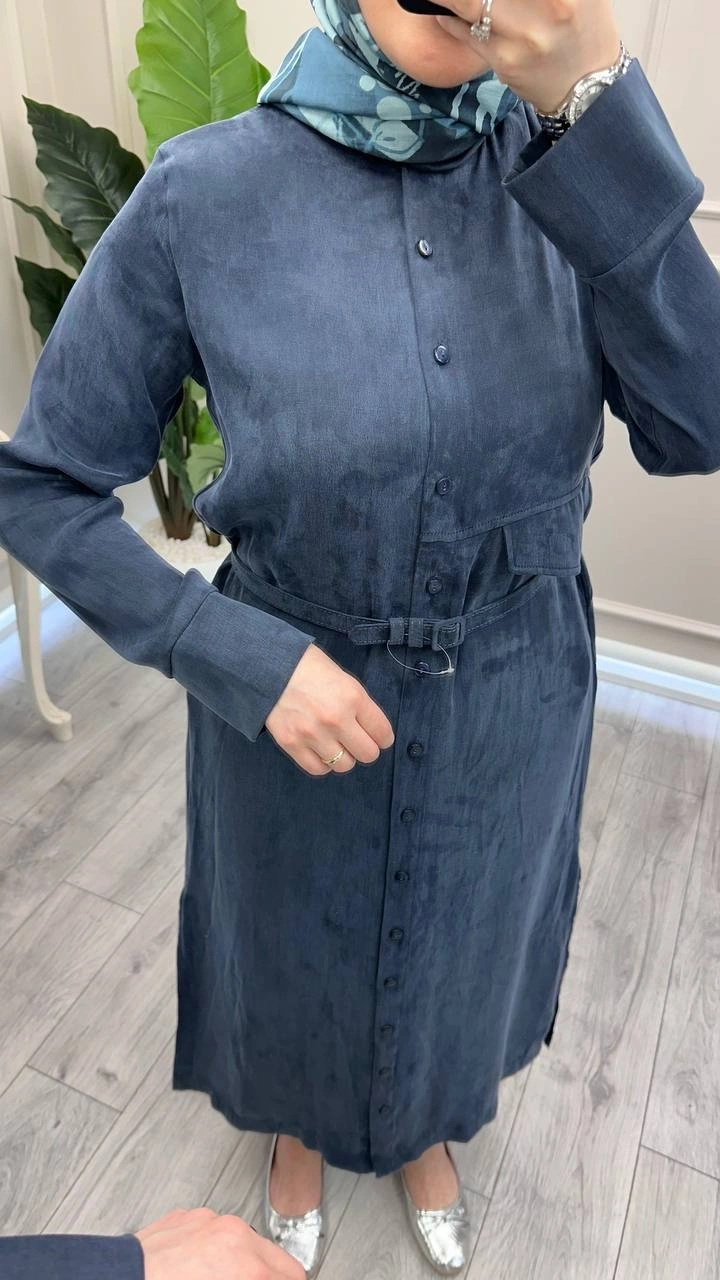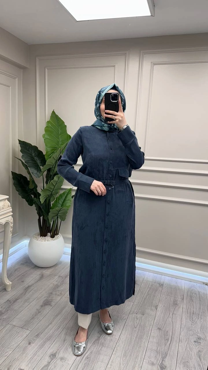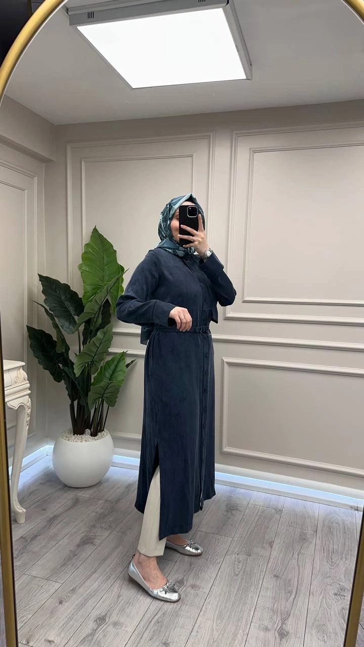 Hilay Lacivert Capri Asimetrik Cepli Uzun Kap
