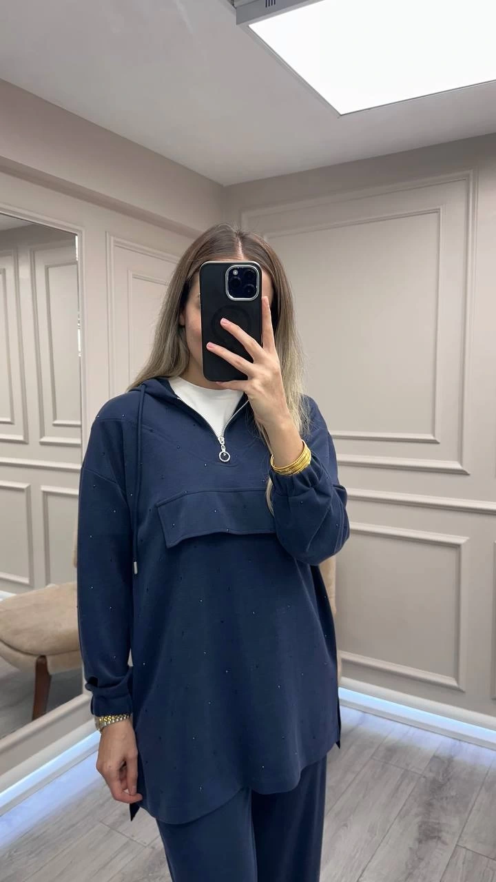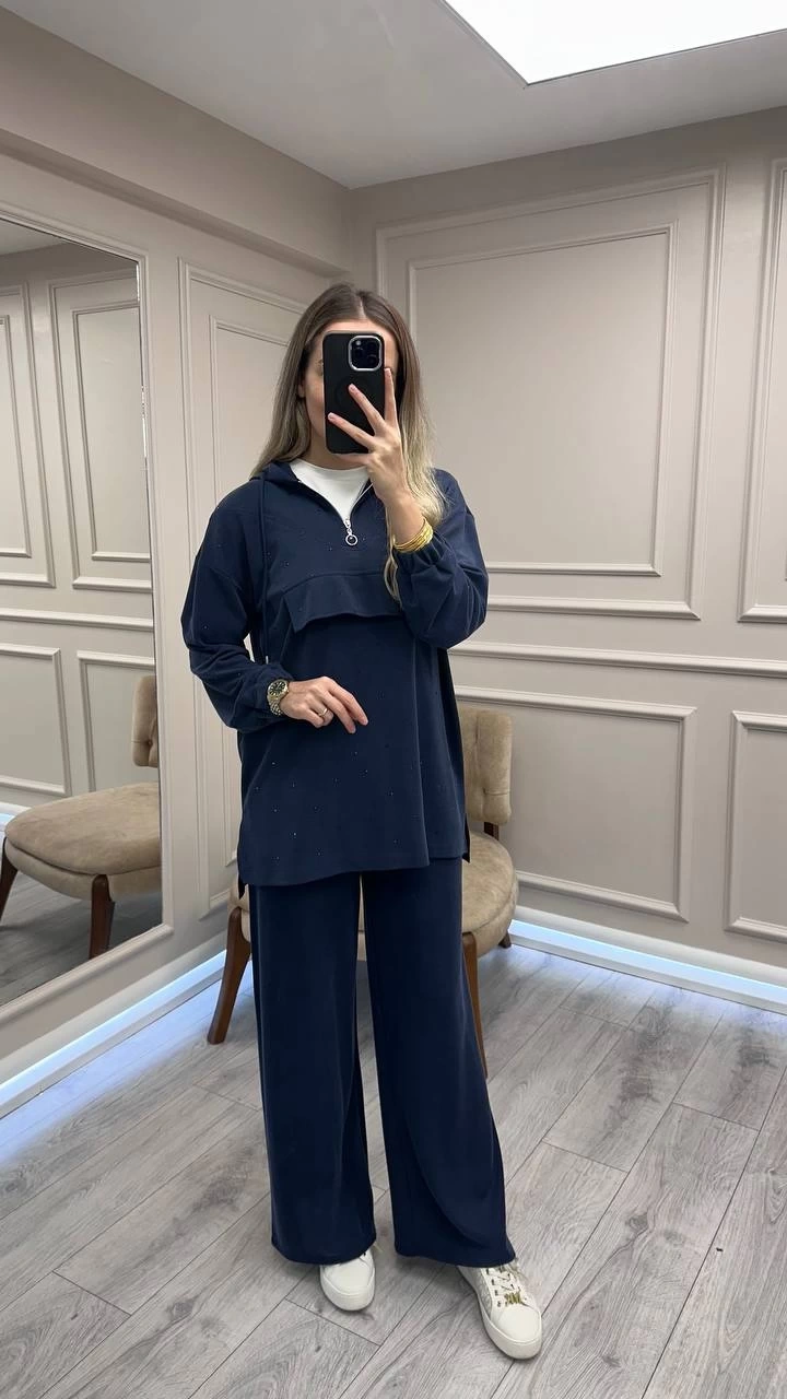 HNS HNS1111 Lacivert Pul Detaylı İkili Takım