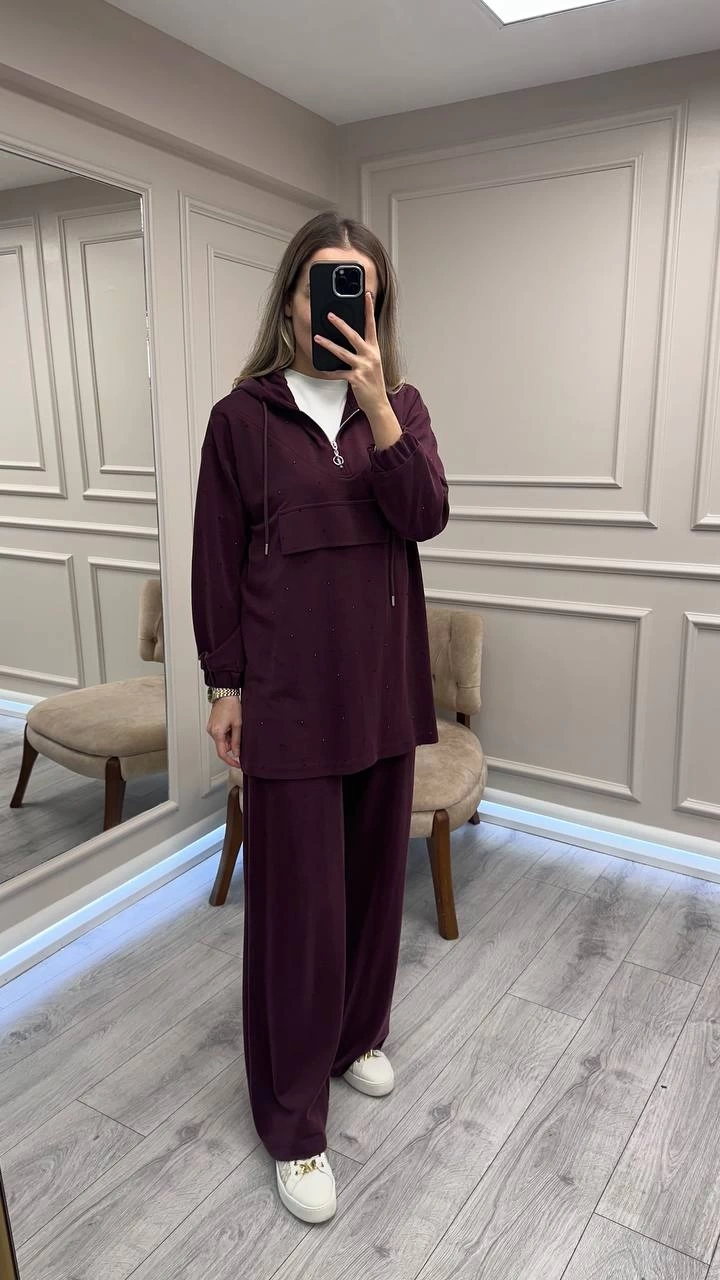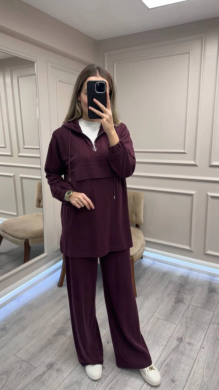 HNS HNS1111 Bordo Pul Detaylı İkili Takım