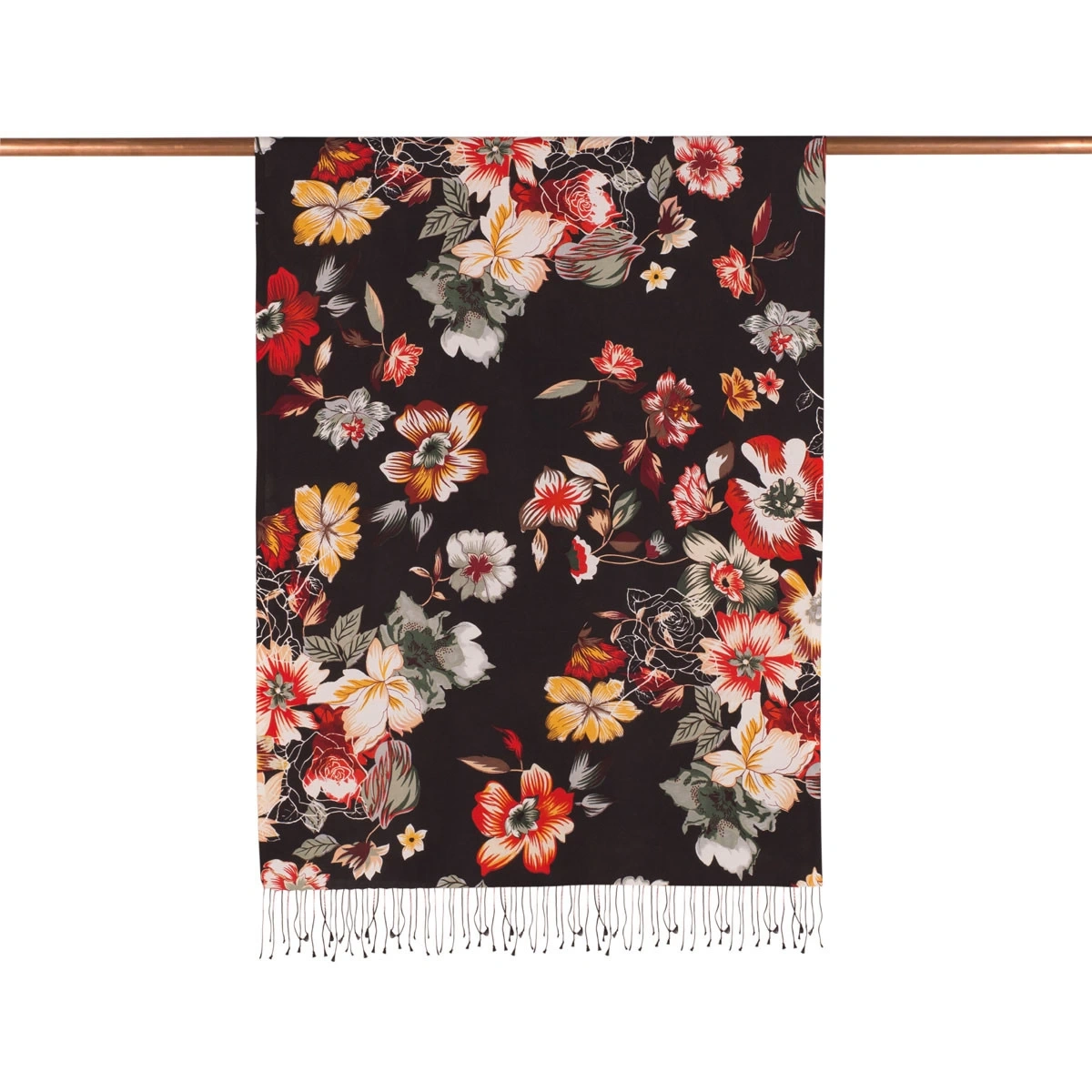 İpekevi 07165 Siyah Yaz Bahçesi Desenli İpek Şal