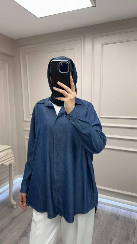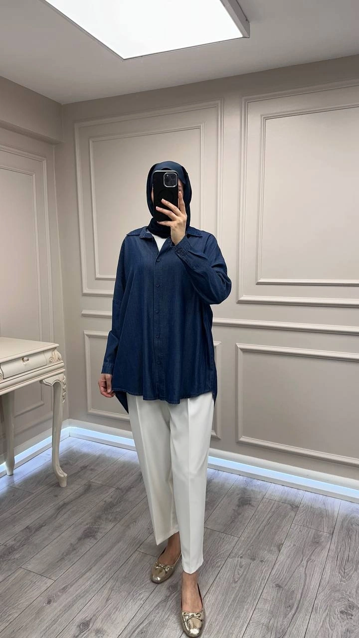 Magazin Koyu Mavi Tensel Gömlek