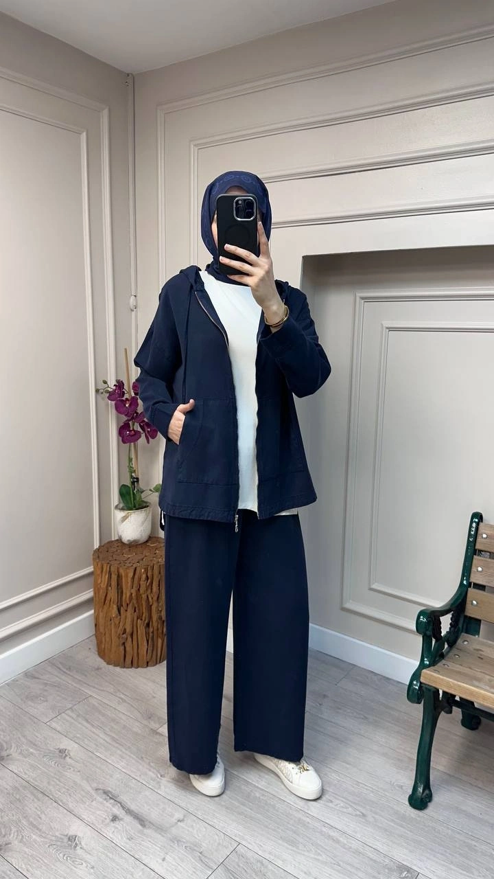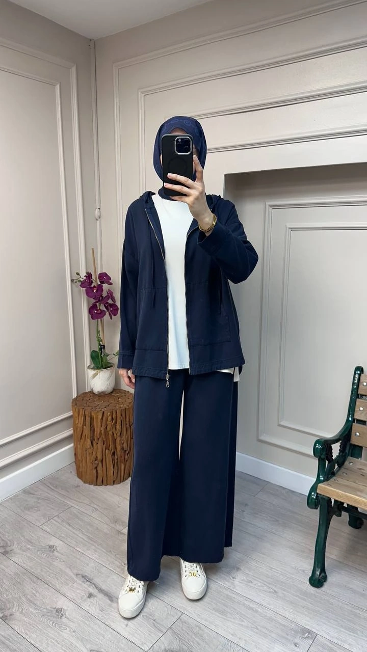 Magazin 7433 Lacivert Önü Fermuarlı Tensel Kot Takım