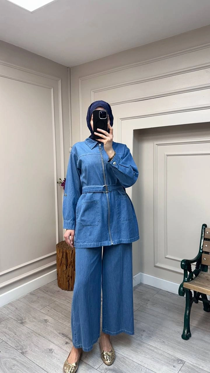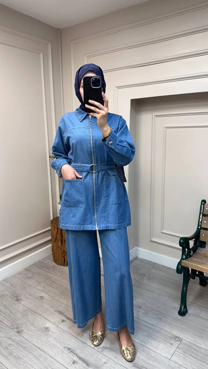Magazin 7443 Açık Mavi Kemerli Tensel Takım