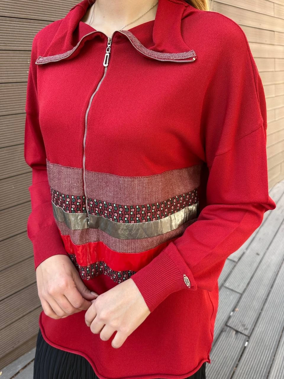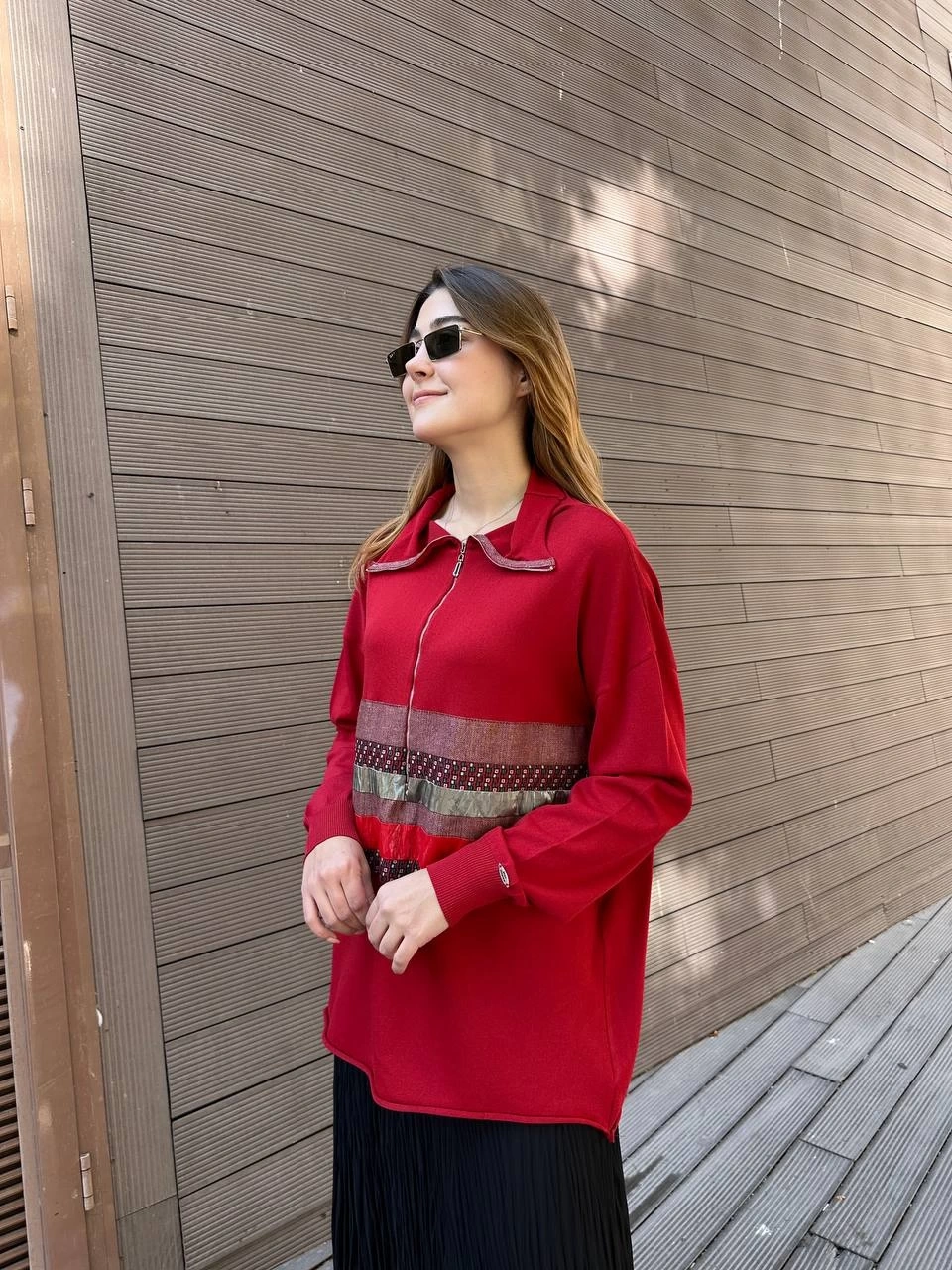 Misswhence 38001 Kırmızı Triko Patchwork Tunik