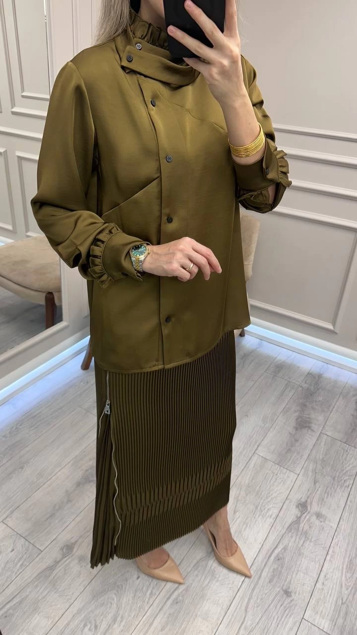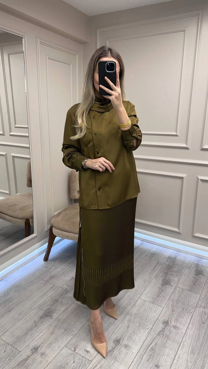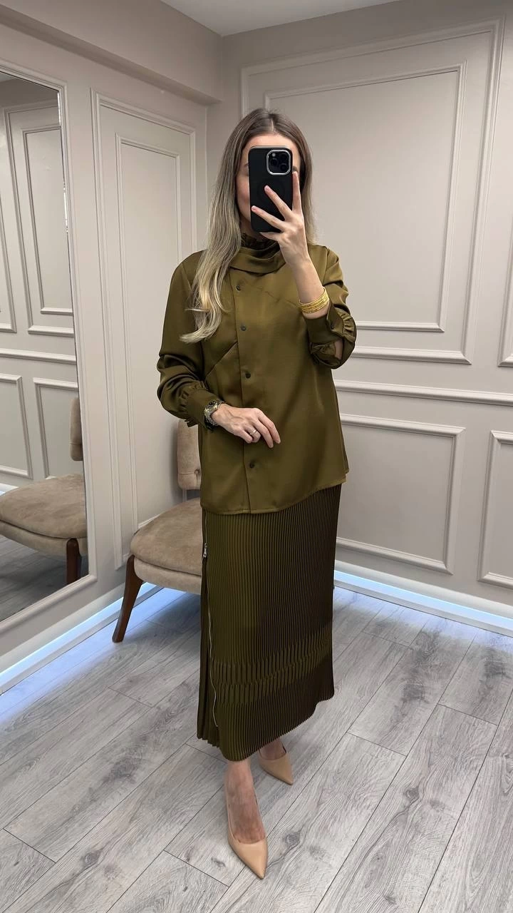 Misswhence 38015 Yeşil Saten Etekli Takım
