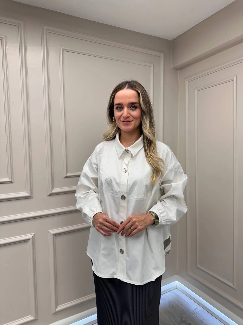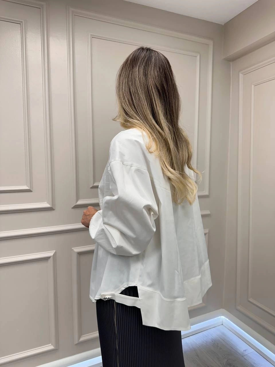 Misswhence 38031 Beyaz Dikiş Detaylı Tunik
