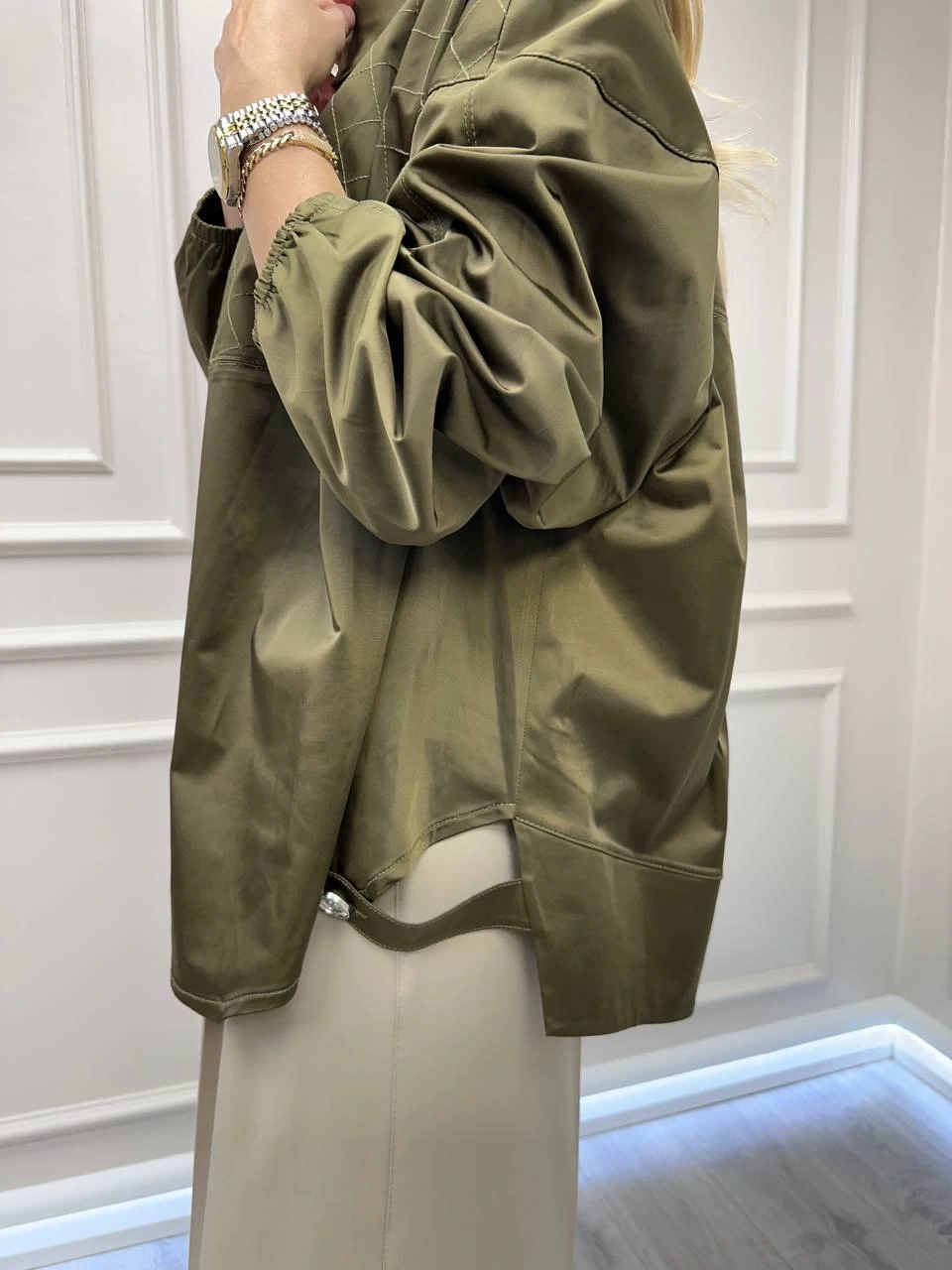 Misswhence 38031 Haki Dikiş Detaylı Tunik