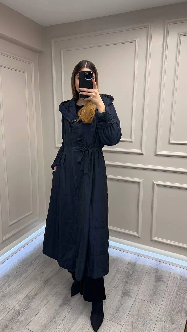 Misswhence 38513 Lacivert İçi Pamuk Kumaş Kaban
