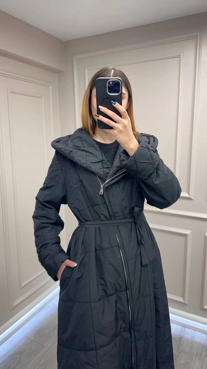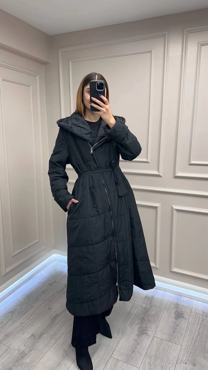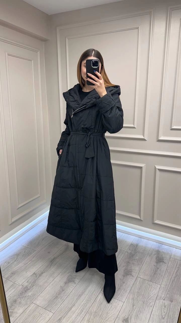 Misswhence 38513 Siyah İçi Pamuk Kumaş Kaban