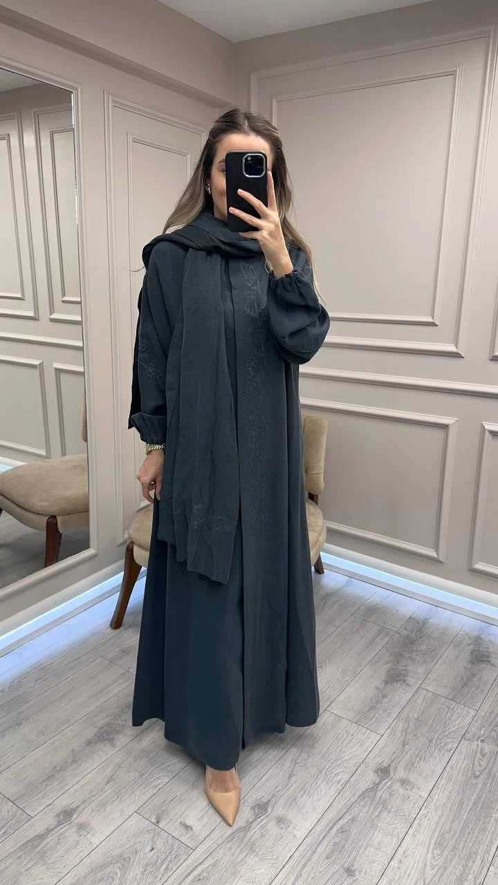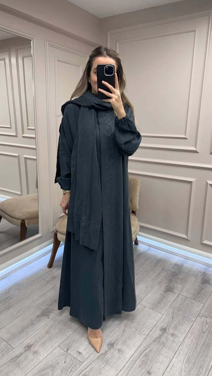 Misswhence Petrol Yeşili Nakış Detaylı Şallı Ferace