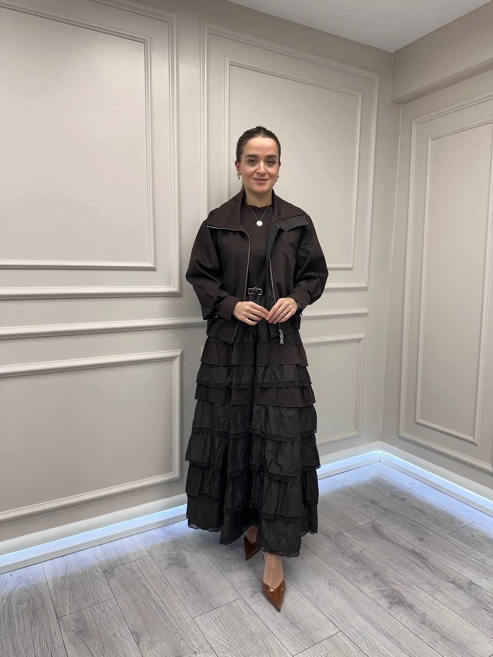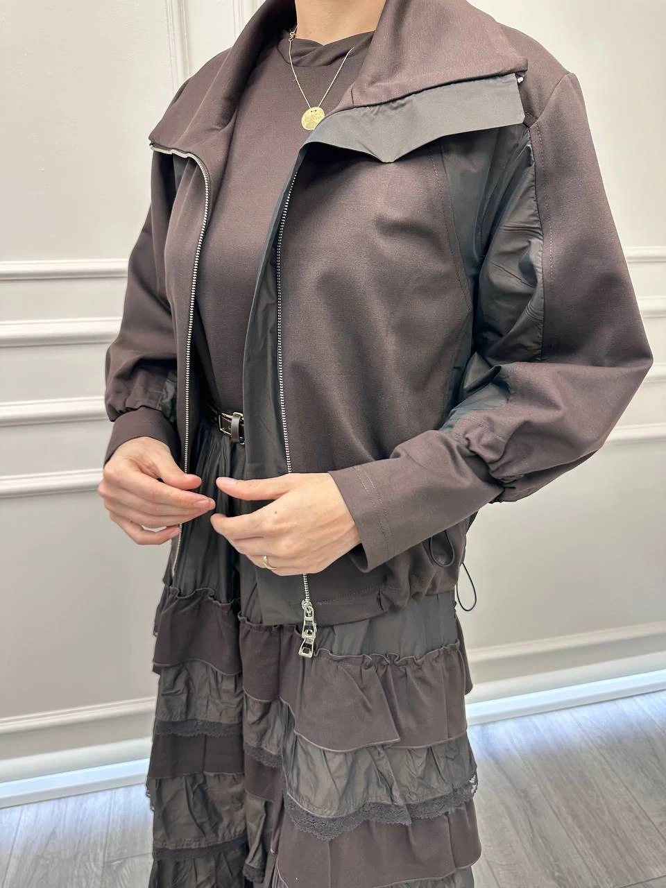 Misswhence 38807 Kahverengi Ceketli İkili Elbise