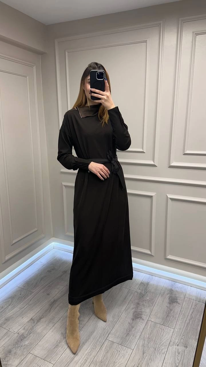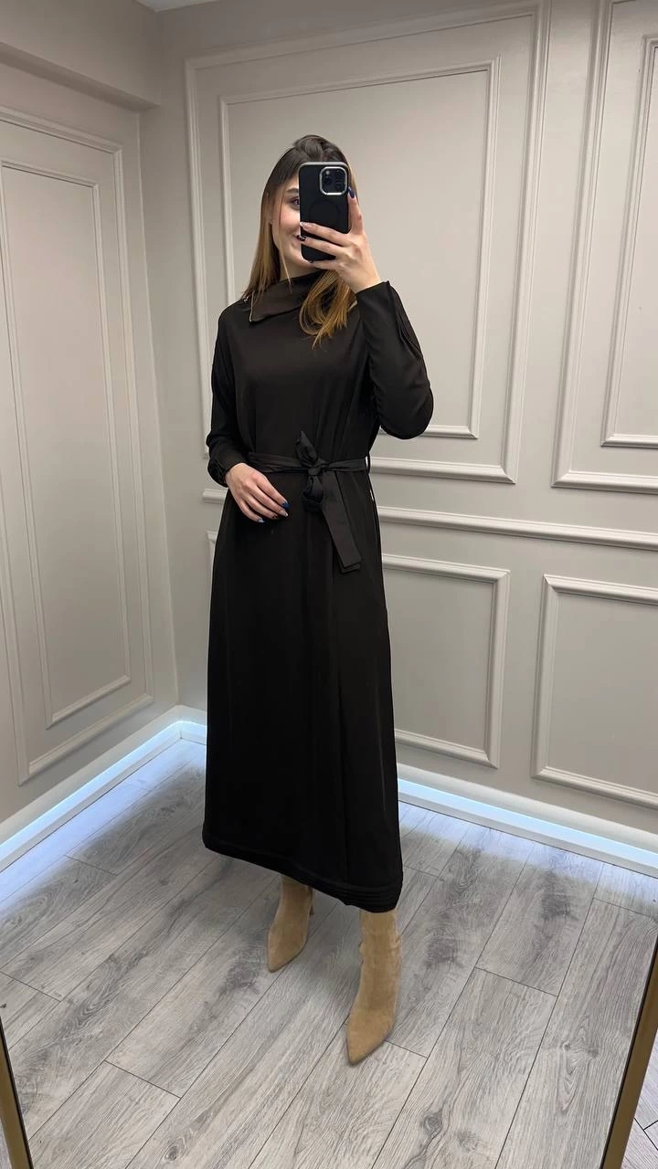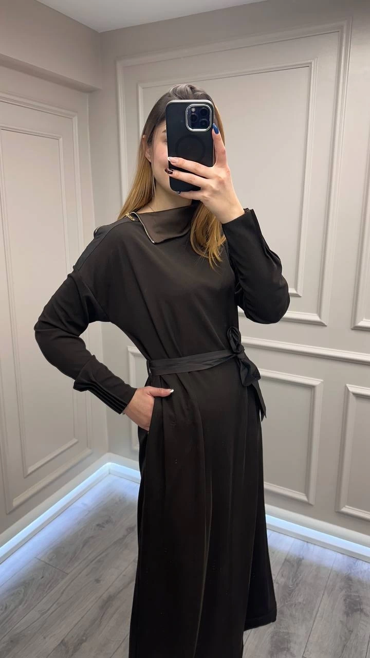 Misswhence 38822 Kahverengi Fermuar Detaylı Elbise