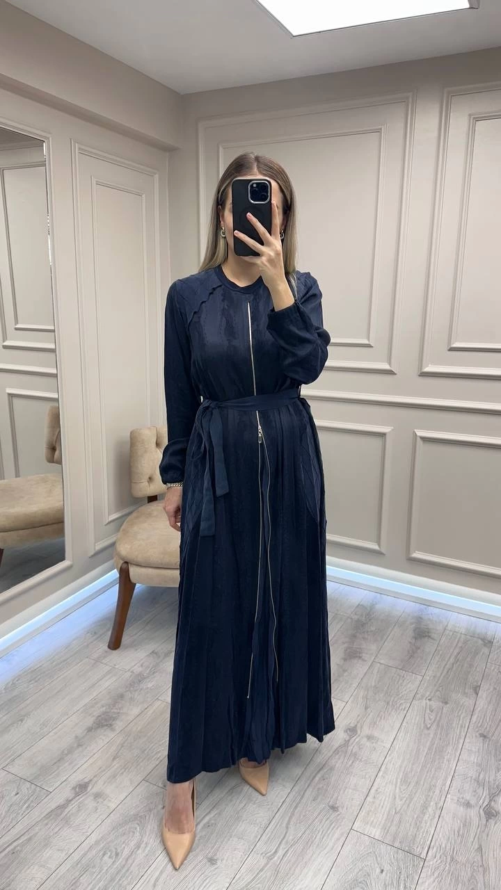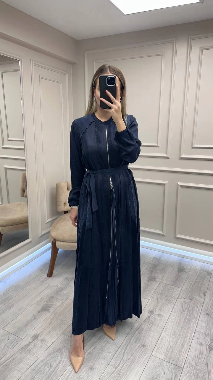 Misswhence 38835 Lacivert Fermuar Detaylı Cupro Elbise