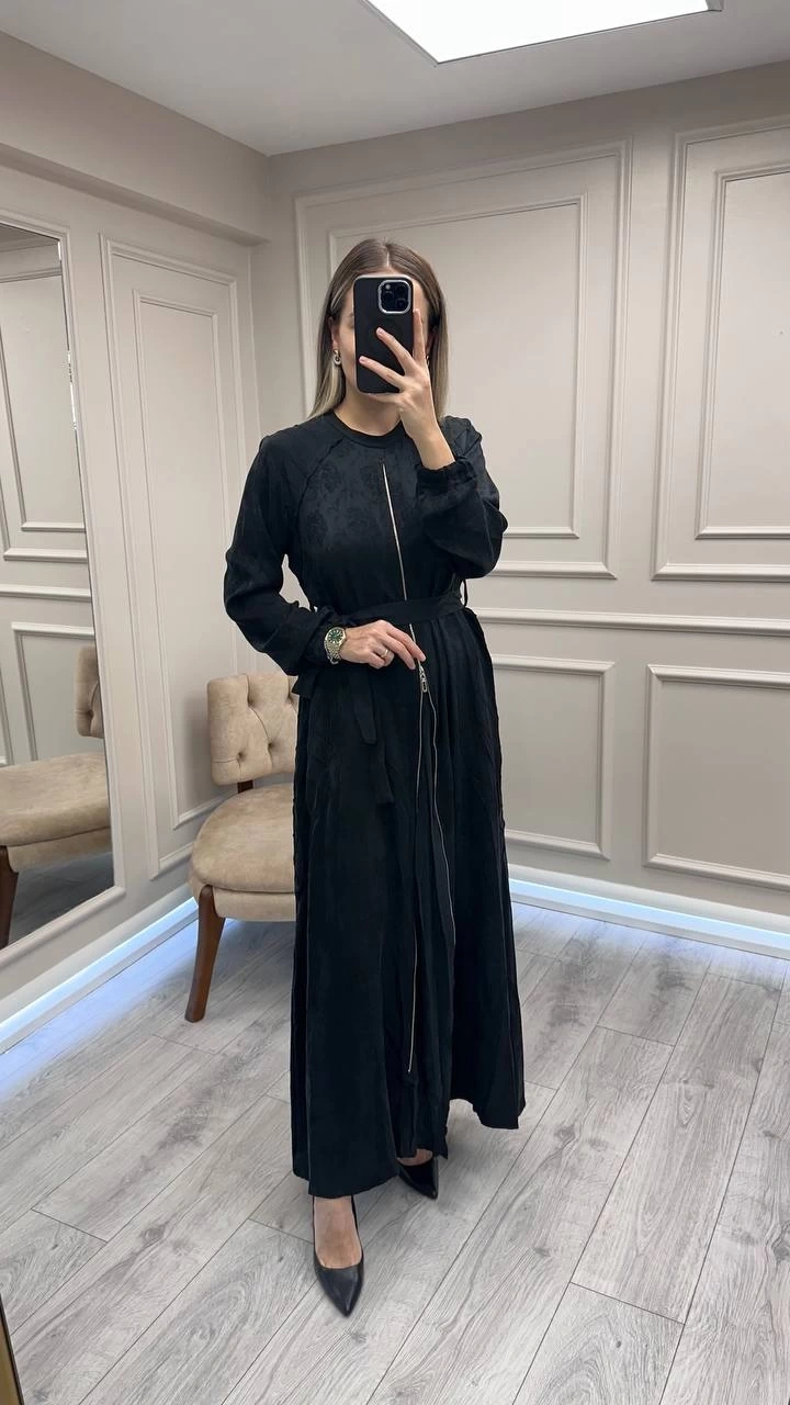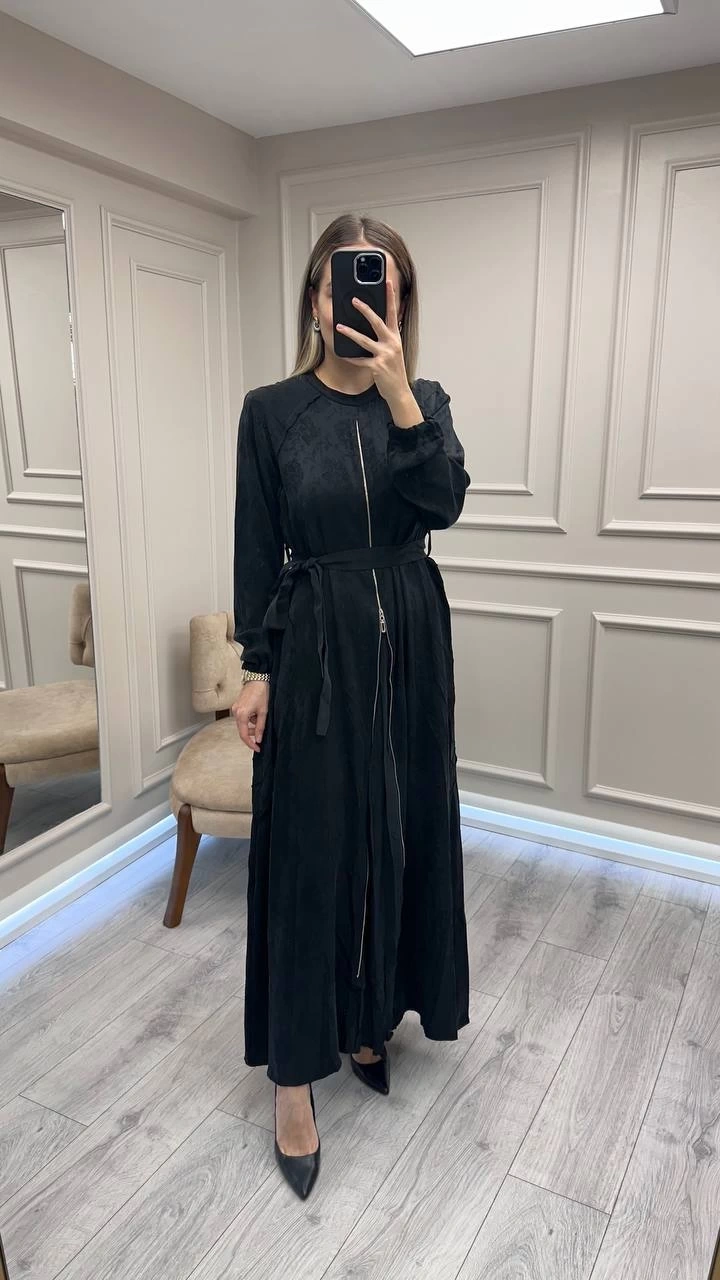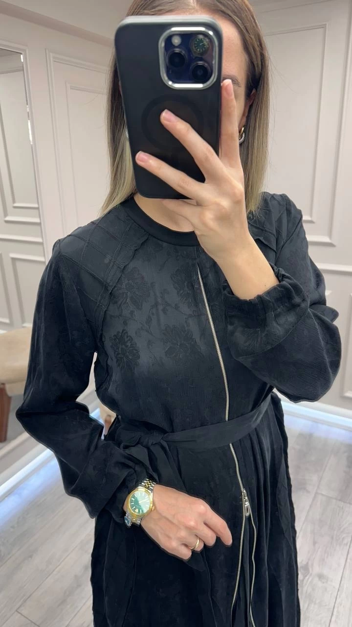 Misswhence 38835 Siyah Fermuar Detaylı Cupro Elbise
