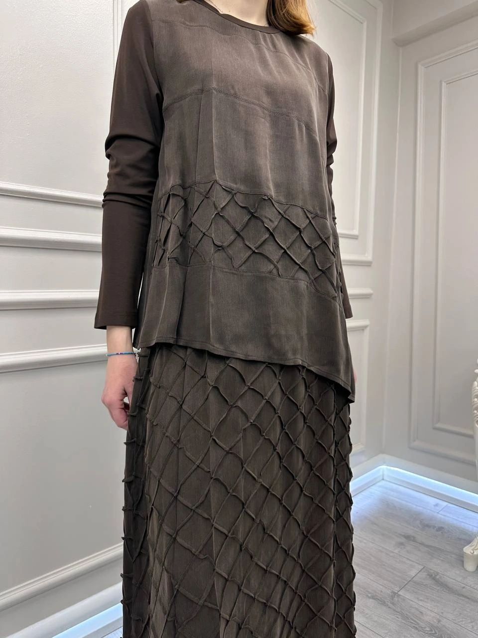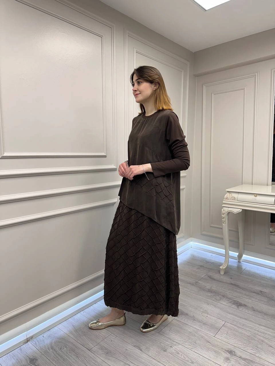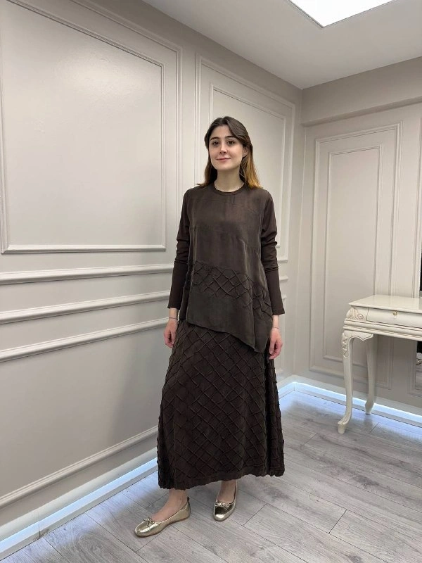 Misswhence 39002 Kahverengi Tunik Etek Takım