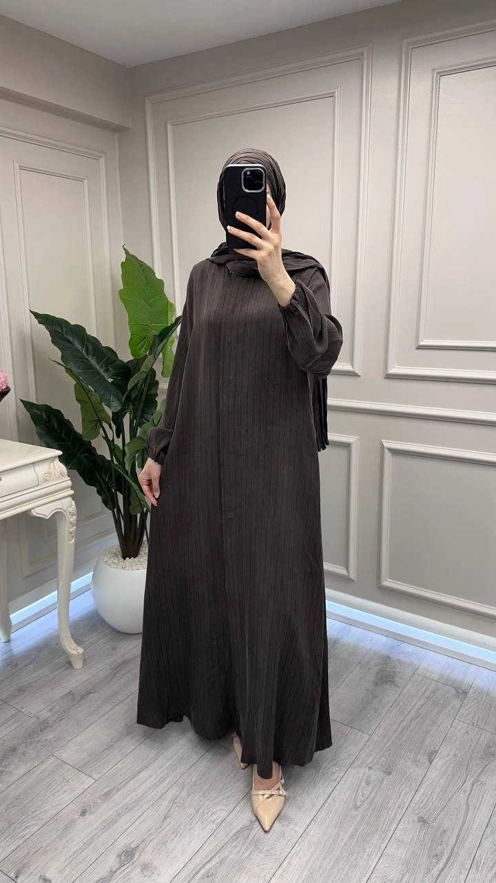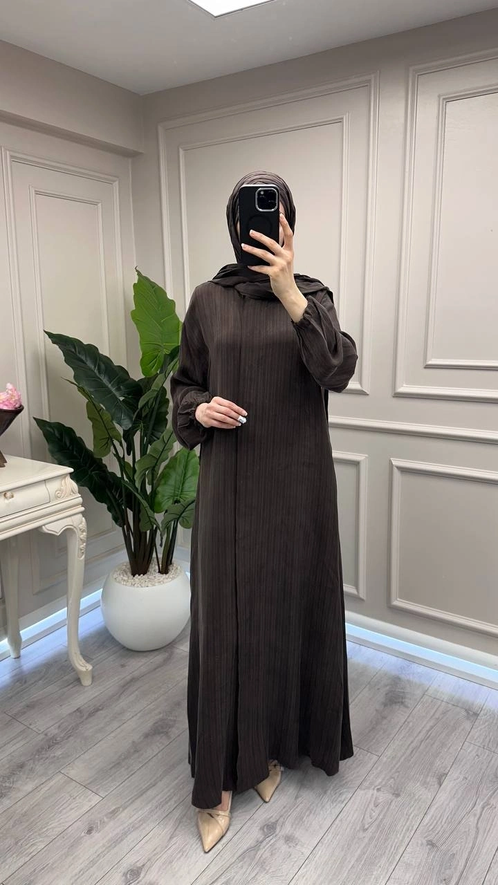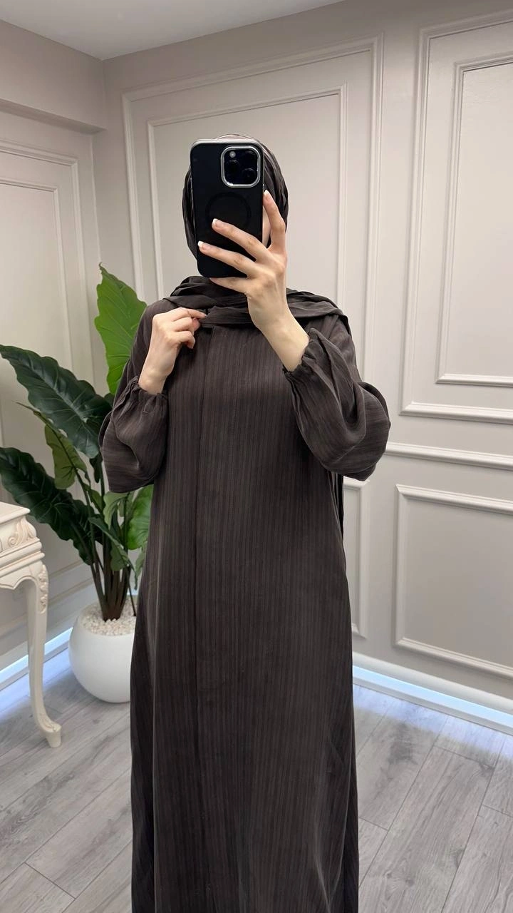 Misswhence 39514 Kahverengi Çizgi Detaylı Şallı Ferace