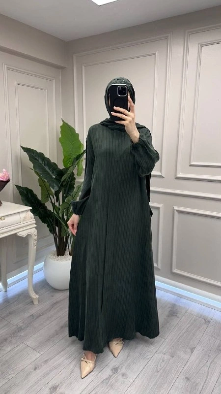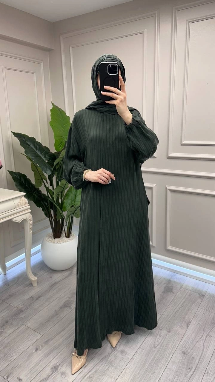 Misswhence 39514 Yeşil Çizgi Detaylı Şallı Ferace