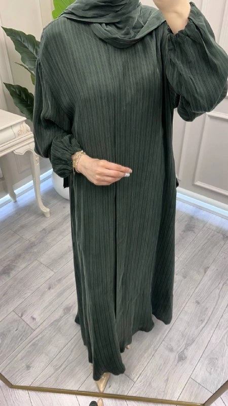 Misswhence Yeşil Çizgi Detaylı Şallı Ferace
