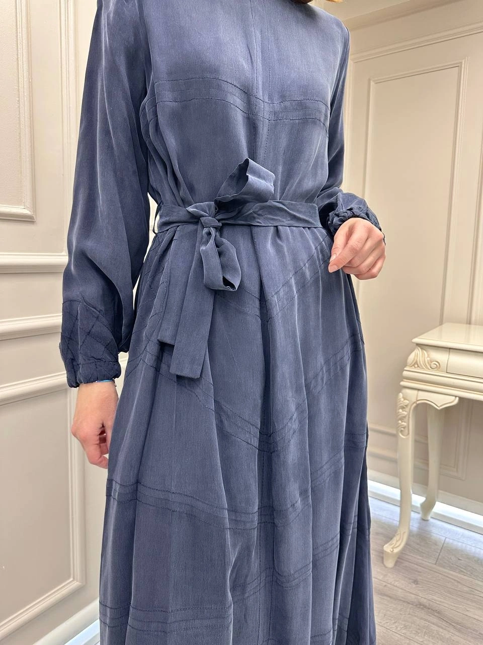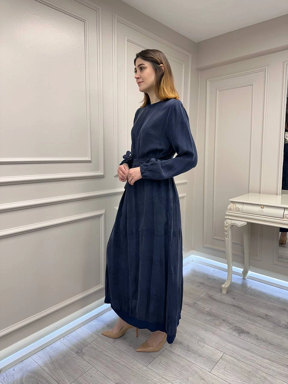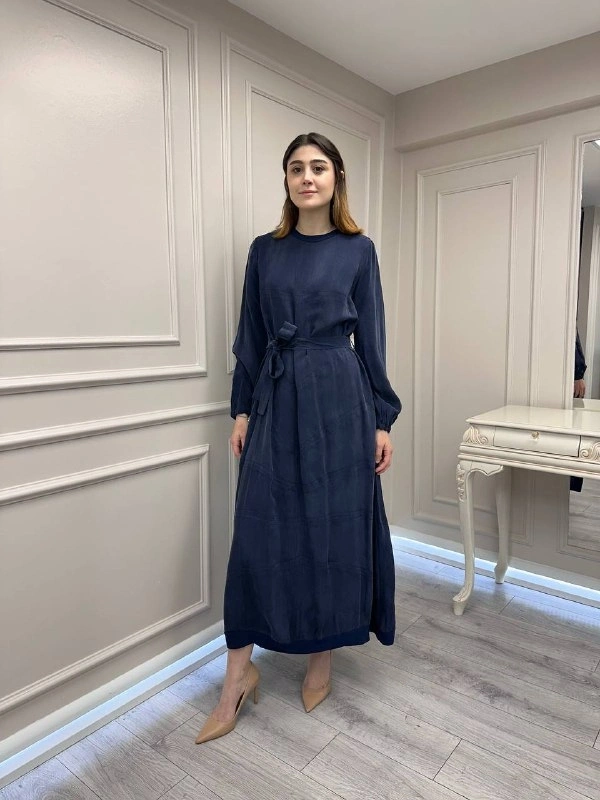 Misswhence 39800 Lacivert Dikiş Detaylı Elbise