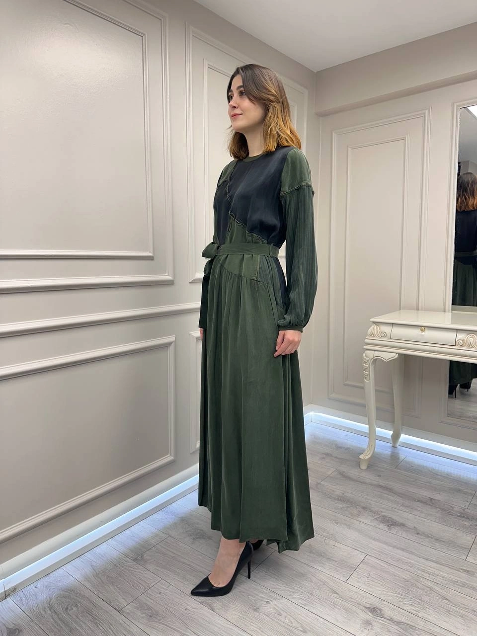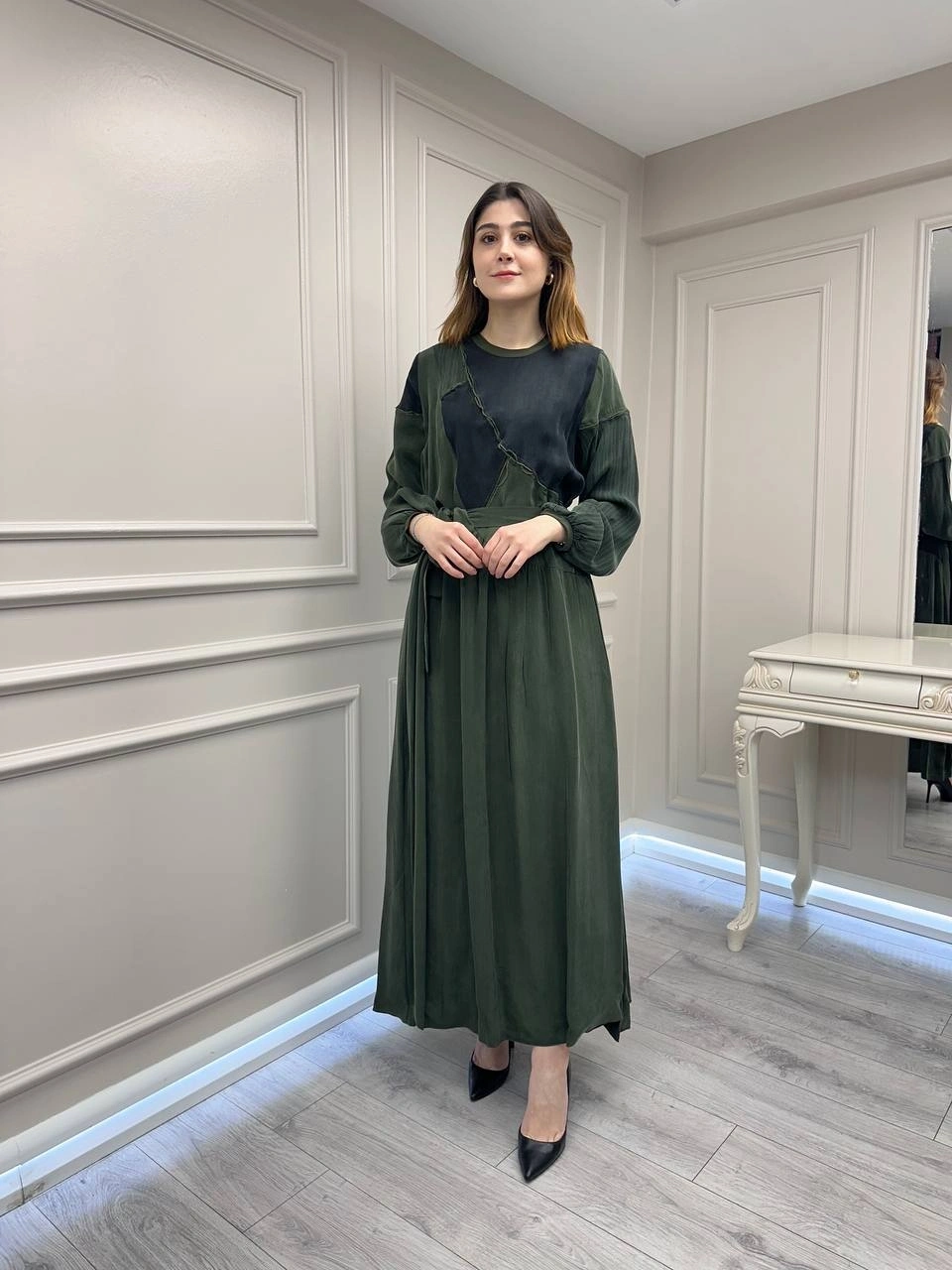 Misswhence 39801 Haki İki Renkli Elbise