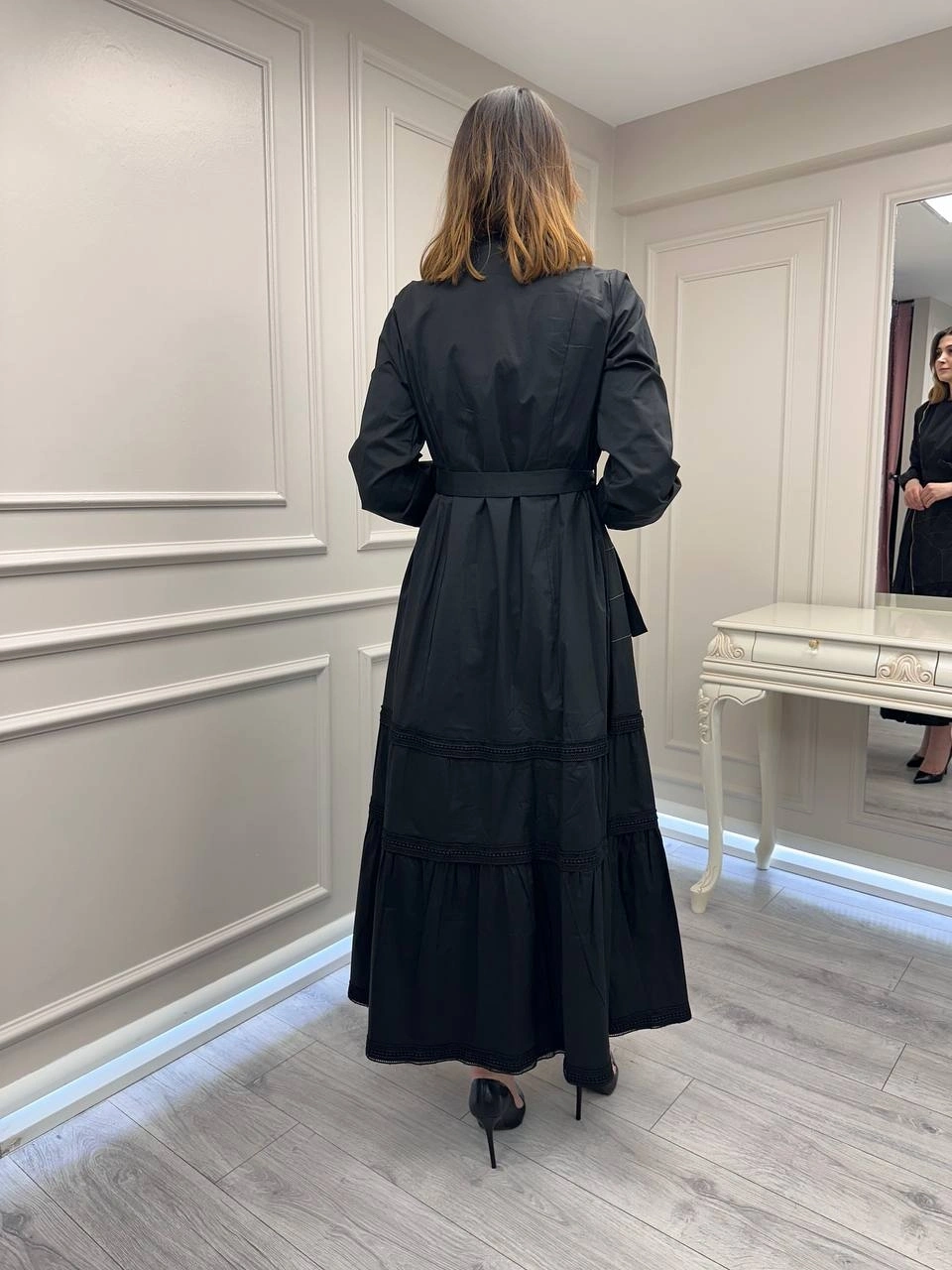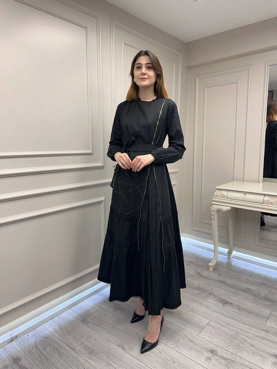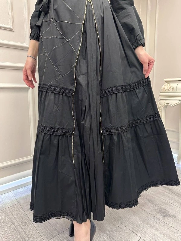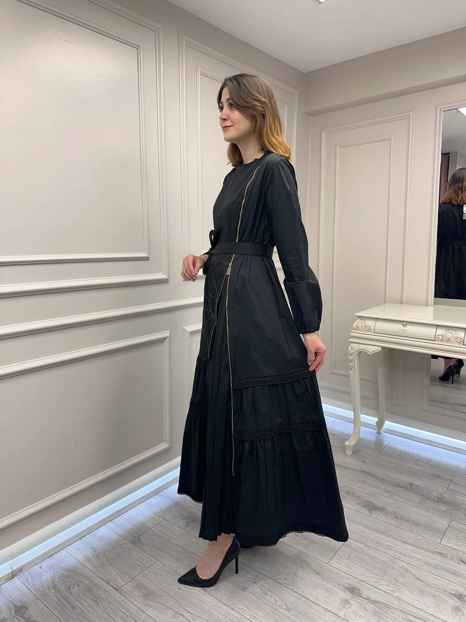 Misswhence 39807 Siyah Fermuar Ve Güpür Detaylı Elbise
