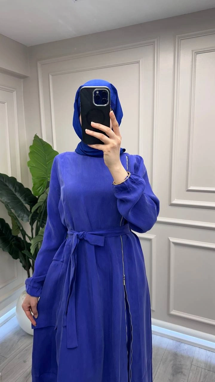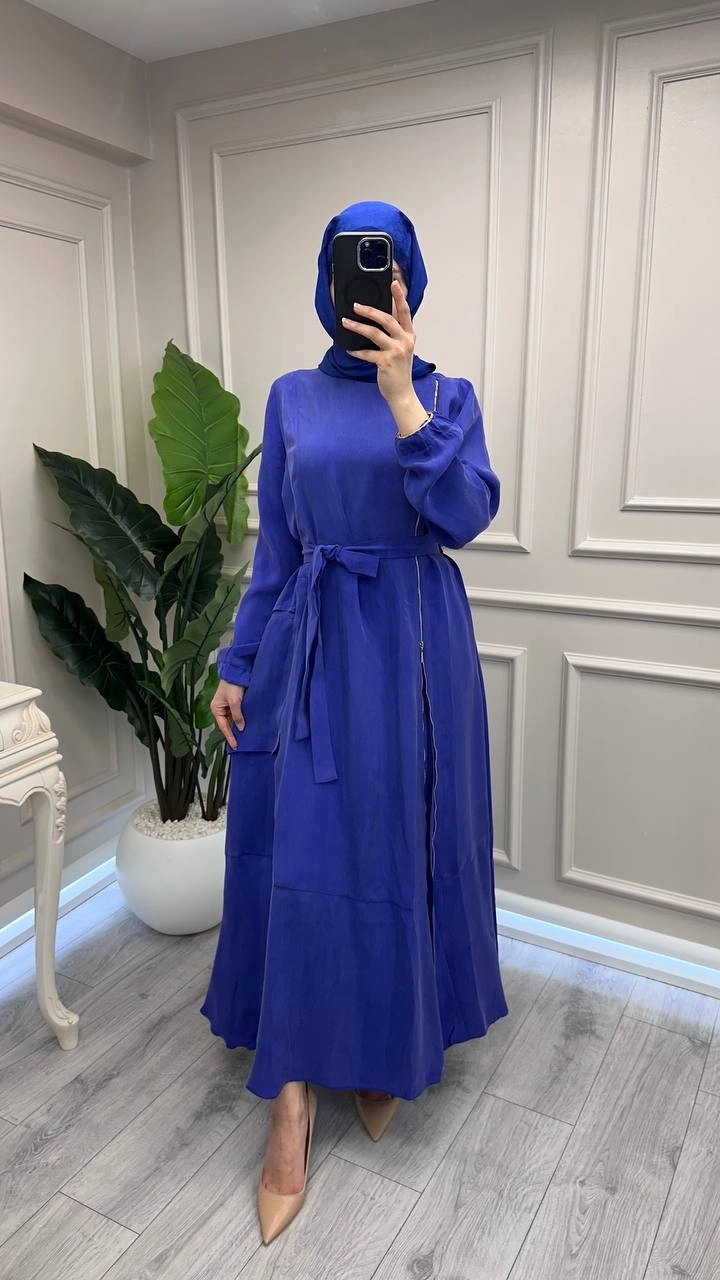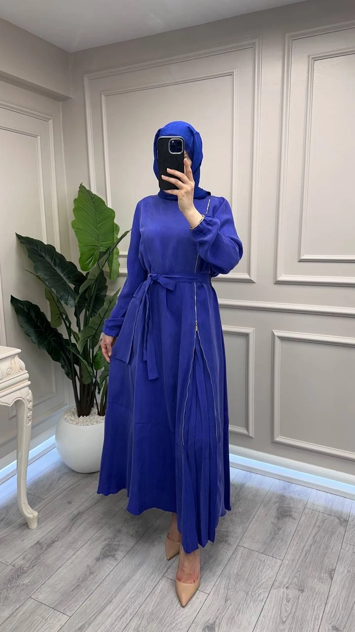 Misswhence 39809 Saks Fermuar Detaylı Elbise