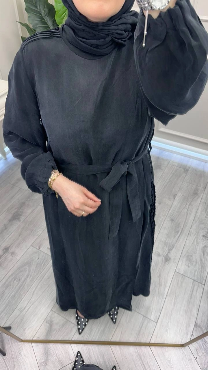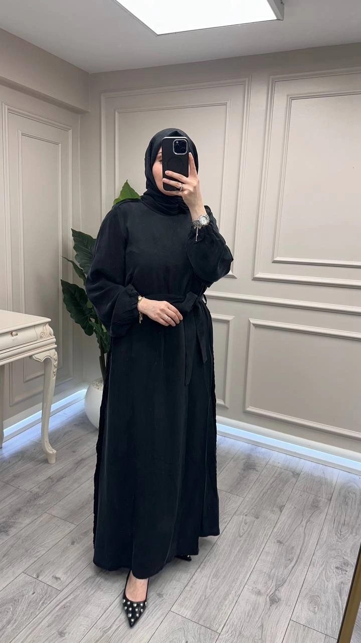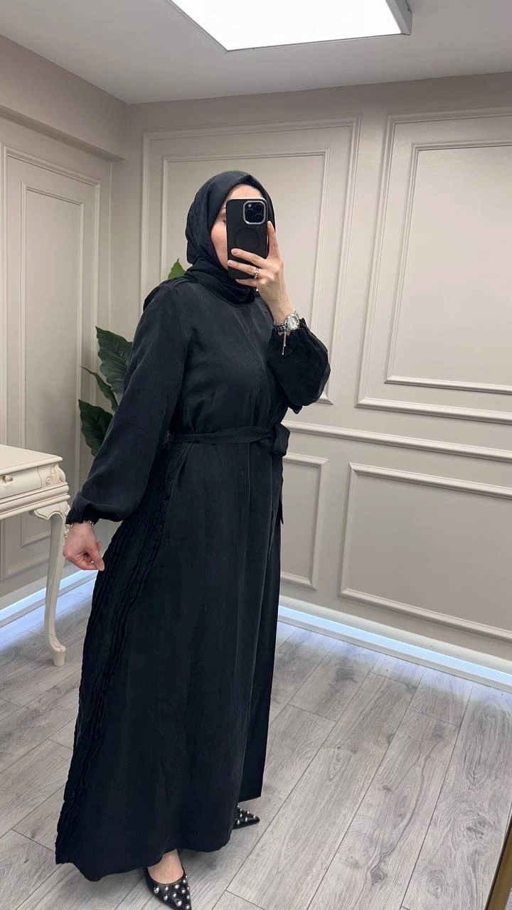 Misswhence 39833 Siyah Nervür Detaylı Elbise