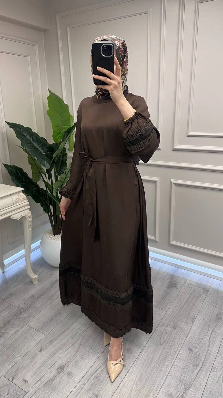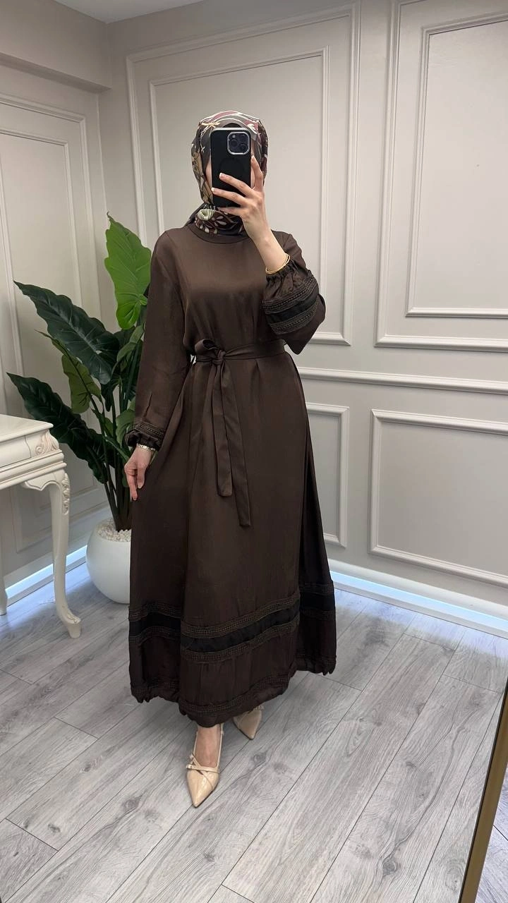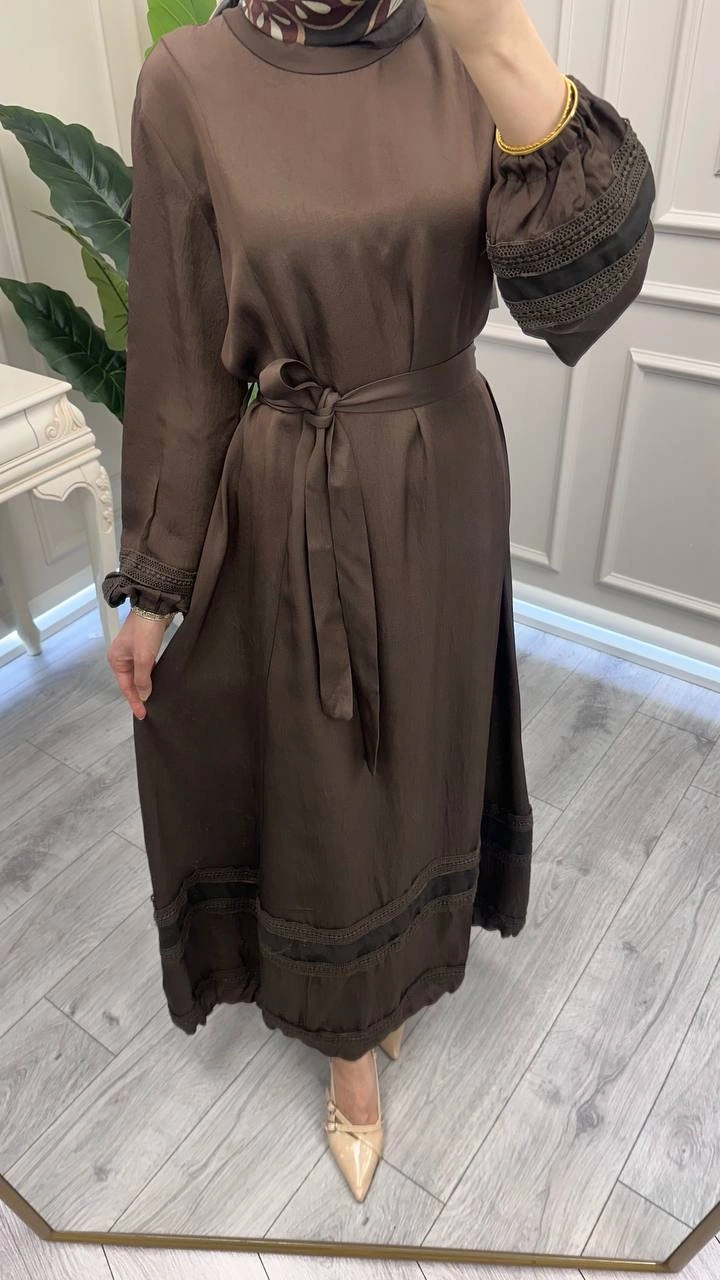 Misswhence 39836 Kahverengi Dantel Detaylı Elbise